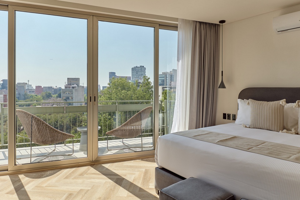 The building feels immersed in the city through its attractive balconies and spacious terraces. The surrounding context enriches the project in every sense, from the dense vegetation flowing in from the street to the privileged views of the urban landscape along “Avenida Paseo de la Reforma”, where Mexico City’s tallest and most iconic buildings can be seen.
