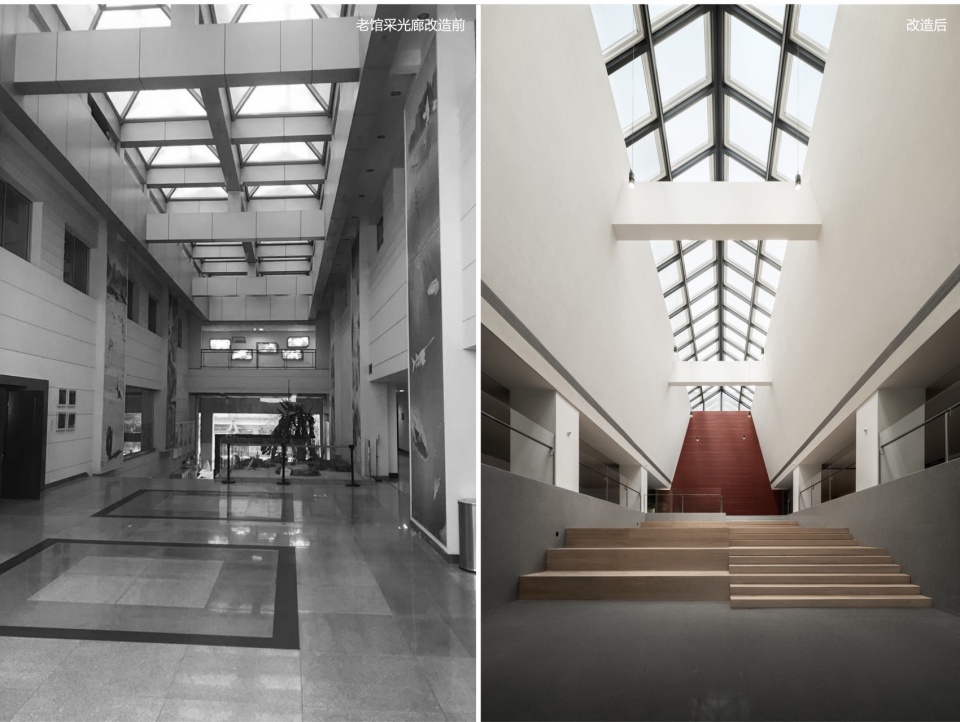▼老馆采光廊改造前后对比,Comparison of the lighting corridor before and after renovation