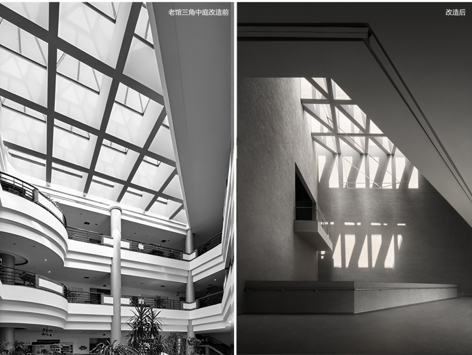 ▼老馆三角中庭改造前后对比,Comparison of atrium before and after renovation