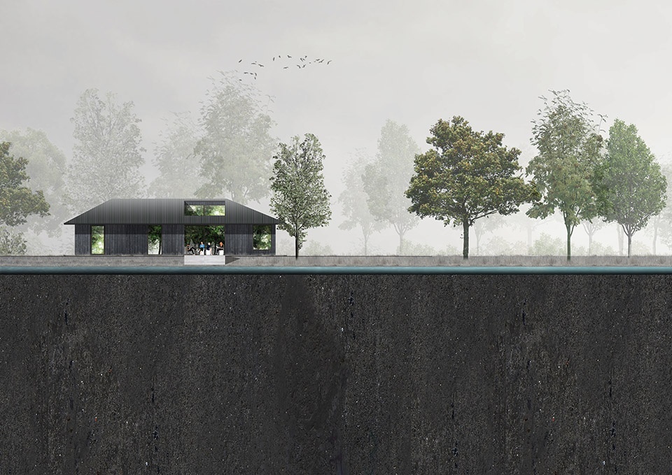 ▼屋顶在室内空间中扮演着重要角色,the exposed roof plays a key role in the spatial experience