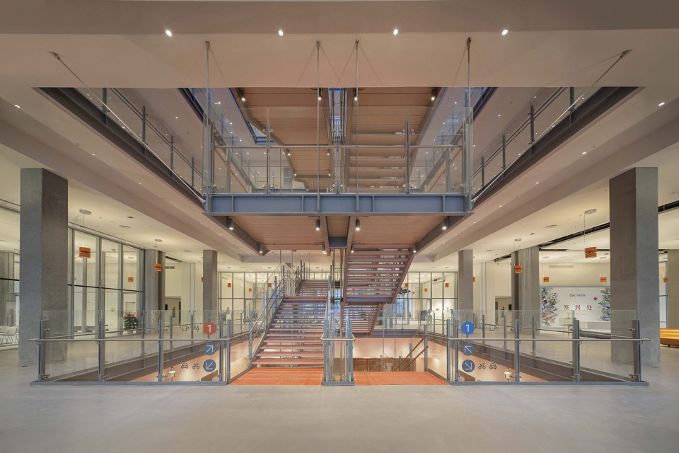 ▼连通楼梯和中庭的交通枢纽,the central nexus of circulation stairs and atrium