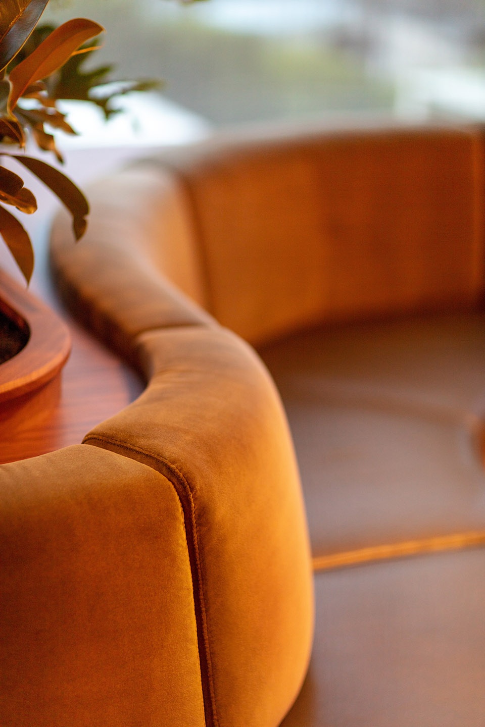 The core of the project is an expansive breakfast area, which serves as a first foray of guests outside of their hotel rooms. The firm focused on creating a luminous and multi-functional space that would extend beyond the purposes of a breakfast buffet to also serve as a breakout space for the hotel’s adjoining meeting rooms. Soft colours, high-quality walnut, white oak, marbles, velvets, and dichroic steel infuse a sense of lightness and conviviality into clean design gestures that accommodate movement and the functional aspects of the space.