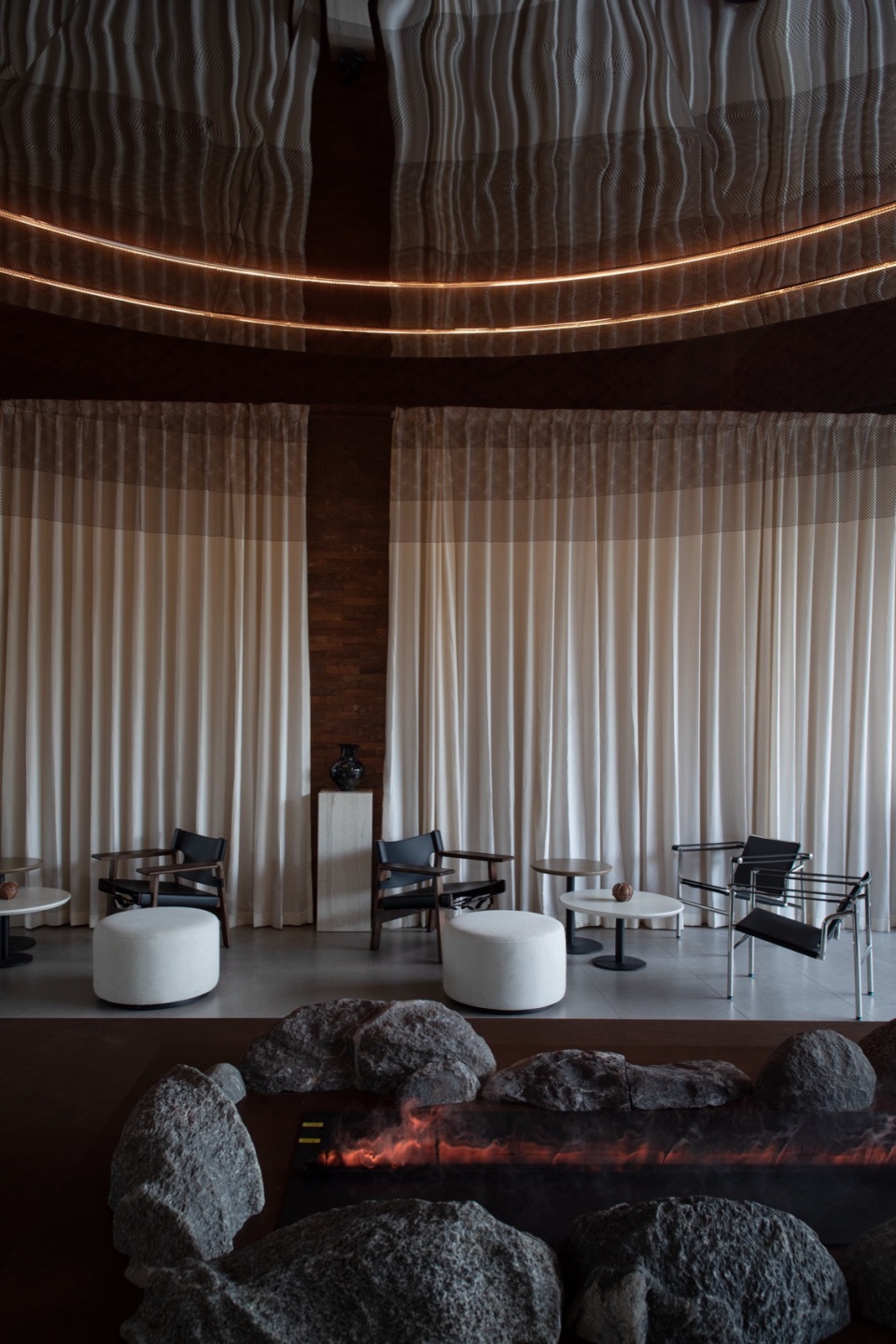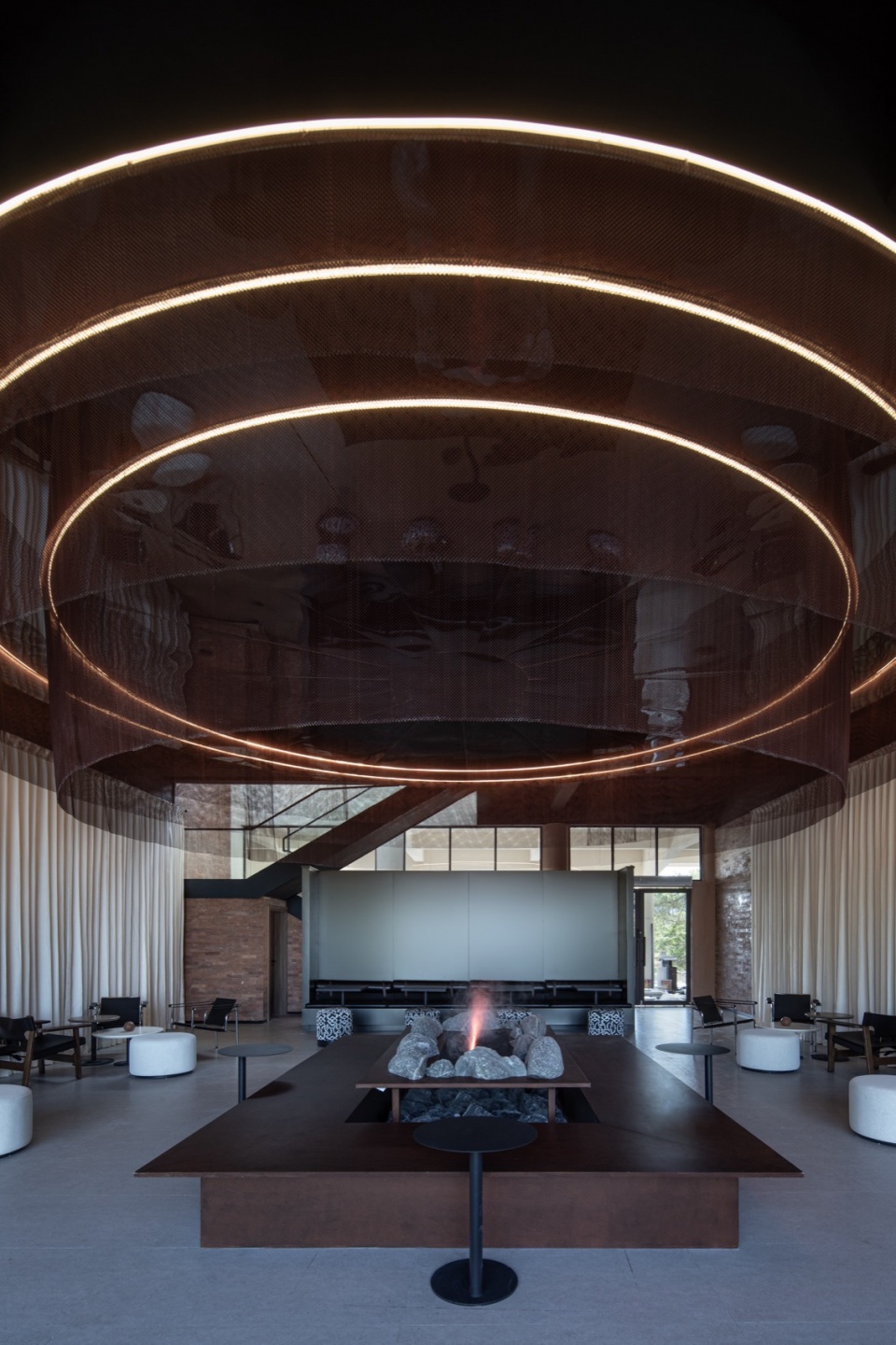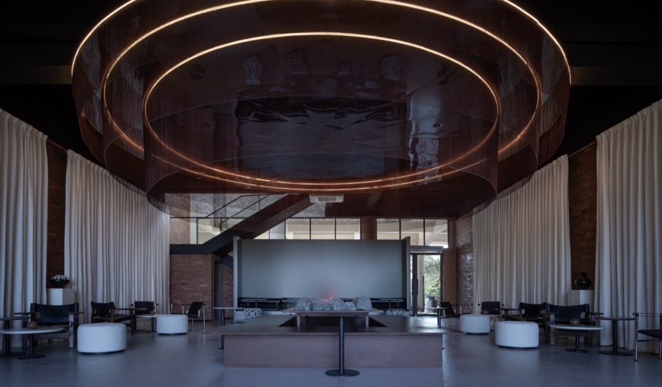 这种最简洁的方式,使空间获得了极高的静谧感和开放性,让人在其中不被设计本身干扰,专注于景观、光线与人的关系。弧形顶面并非形式表达,而是服务于结构整合与空间情绪的有效介入,构成了空间“去设计化”理念的核心体现。
