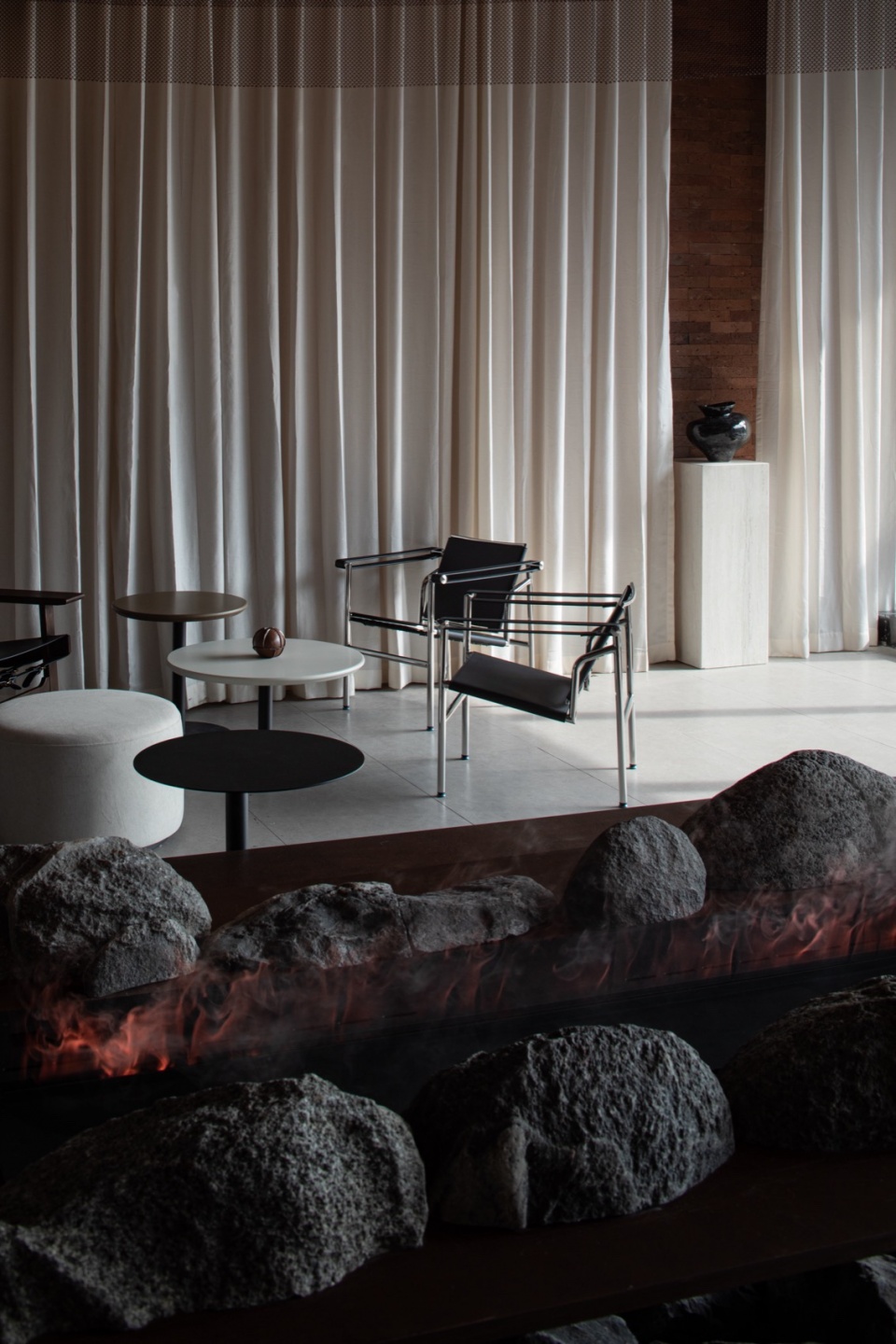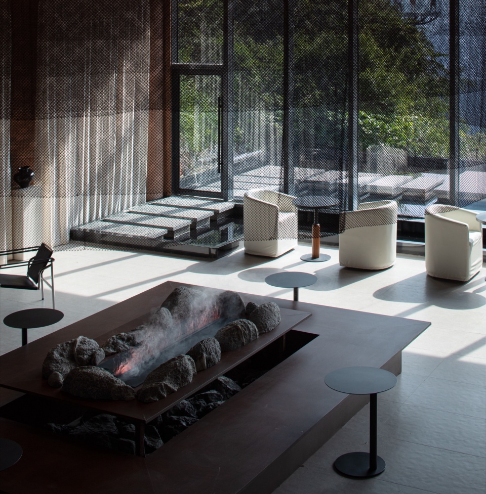 The interplay of water and natural light generates a multi-sensory resonance, activating a dialogue between architecture and nature. Through the introduction of water, light, and greenery, the space achieves a natural regulation of its internal climate while cultivating a sense of openness. Here, one is no longer enclosed, but coexists with the surrounding mountains and landscape.