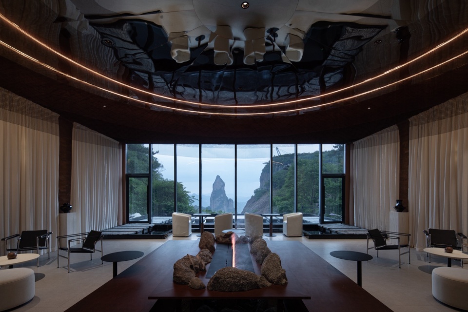 As a national 5A-level tourist attraction imbued with the mystique of a “dwelling place for immortals,” Shenxianju is renowned for its dramatic cliffs, sea of clouds, and deep-rooted Buddhist and Taoist culture. Here, natural landscapes and spiritual beliefs intertwine, forming a place where the sacred topography of the East coexists with untamed nature. Invited to intervene, the Slowcoral team reimagined a previously unfinished support facility into a key node of immersive experience within the scenic area.