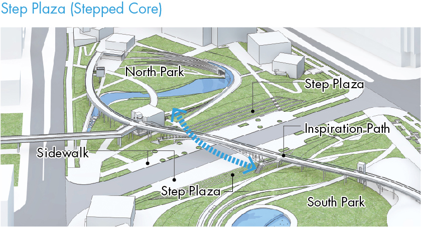 无缝连接道路与南北公园的“Step Plaza” Step Plaza: Seamlessly Connecting the Road with the North and South Parks