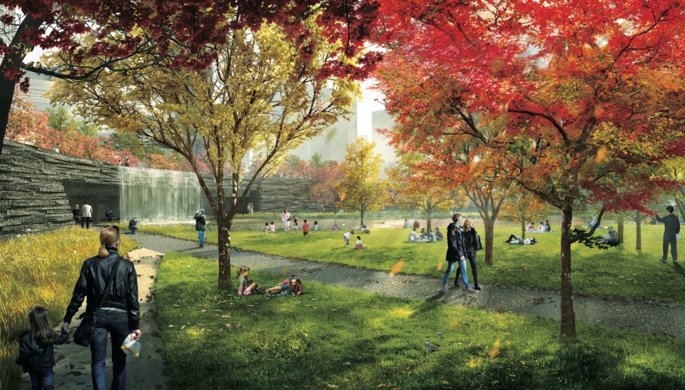 由优质天然草坪、水盘和大屋顶设施构成的“South Park” South Park: Urban Oasis with Lawn, Water Feature, and Large Canopy Event Space