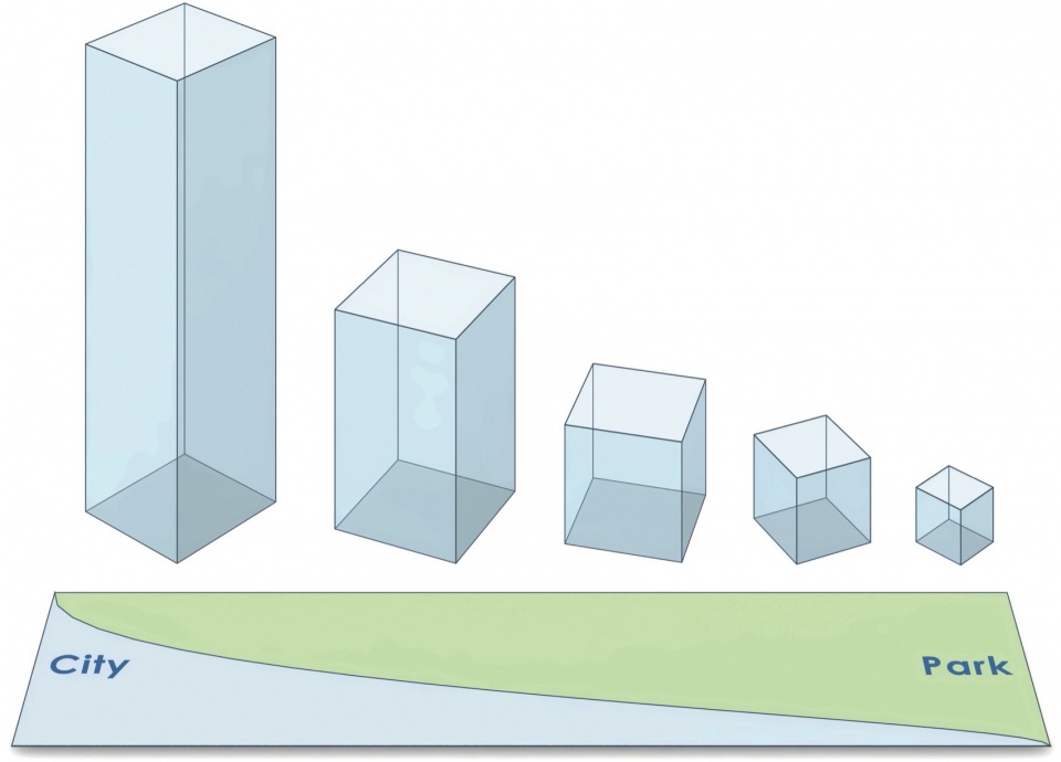 ▼模糊公园与城市空间边界的建筑布局,architectural layout that blurs the boundary between park and urban space