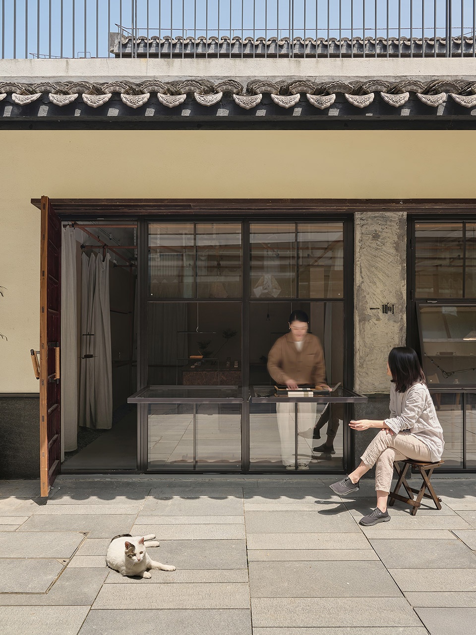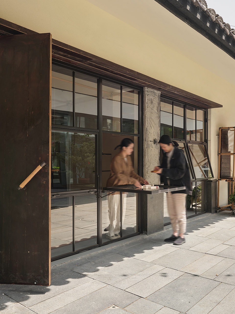 We designed a transformable door-window system for the street-facing boundary: when fully closed, it exudes a modest traditional charm that harmonizes with the surrounding blocks; when the doors and windows operated in carefully engineered switching modes, they seamlessly transform into interactive features like display windows, exhibition counters, and tea stands.