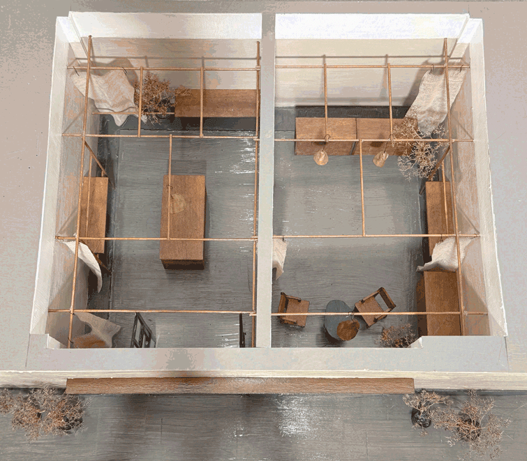 ▼实体模型:展厅与工作坊模式的变化示意,Physical model: the exhibition space and workshop mode changes