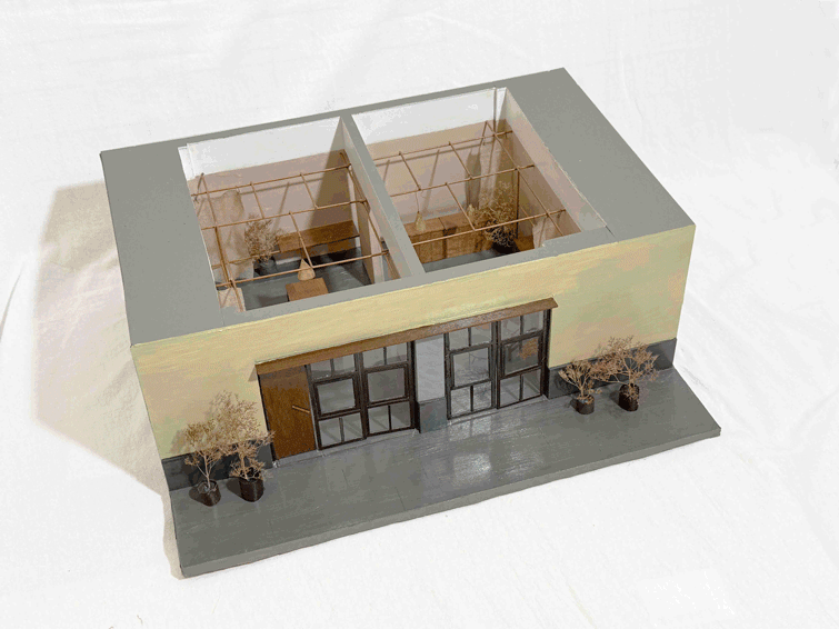▼实体模型:瞬变的门窗系统与内外空间关系示意,Physical model: the transformable door-window system and its relationship with indoor-outdoor spaces