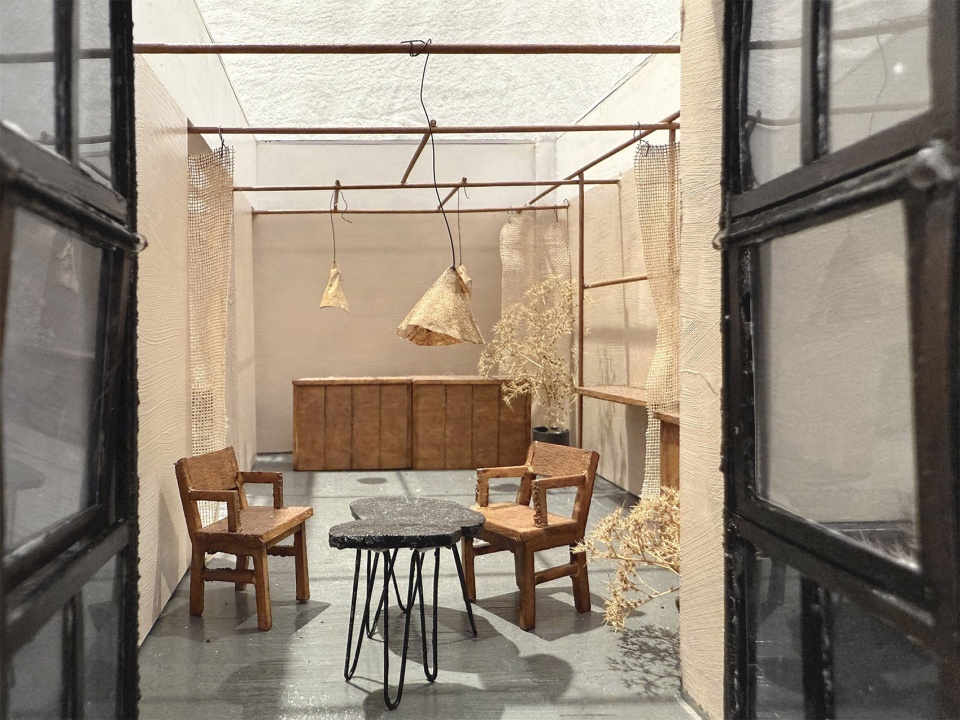 Materials: Stucco, wire Rods, hemp ropes, recycled old wooden planks, Steel doors and windows