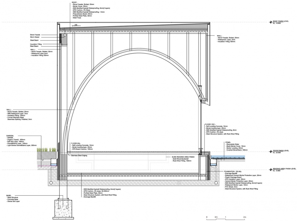 ▼洗马书苑剖面图,library section