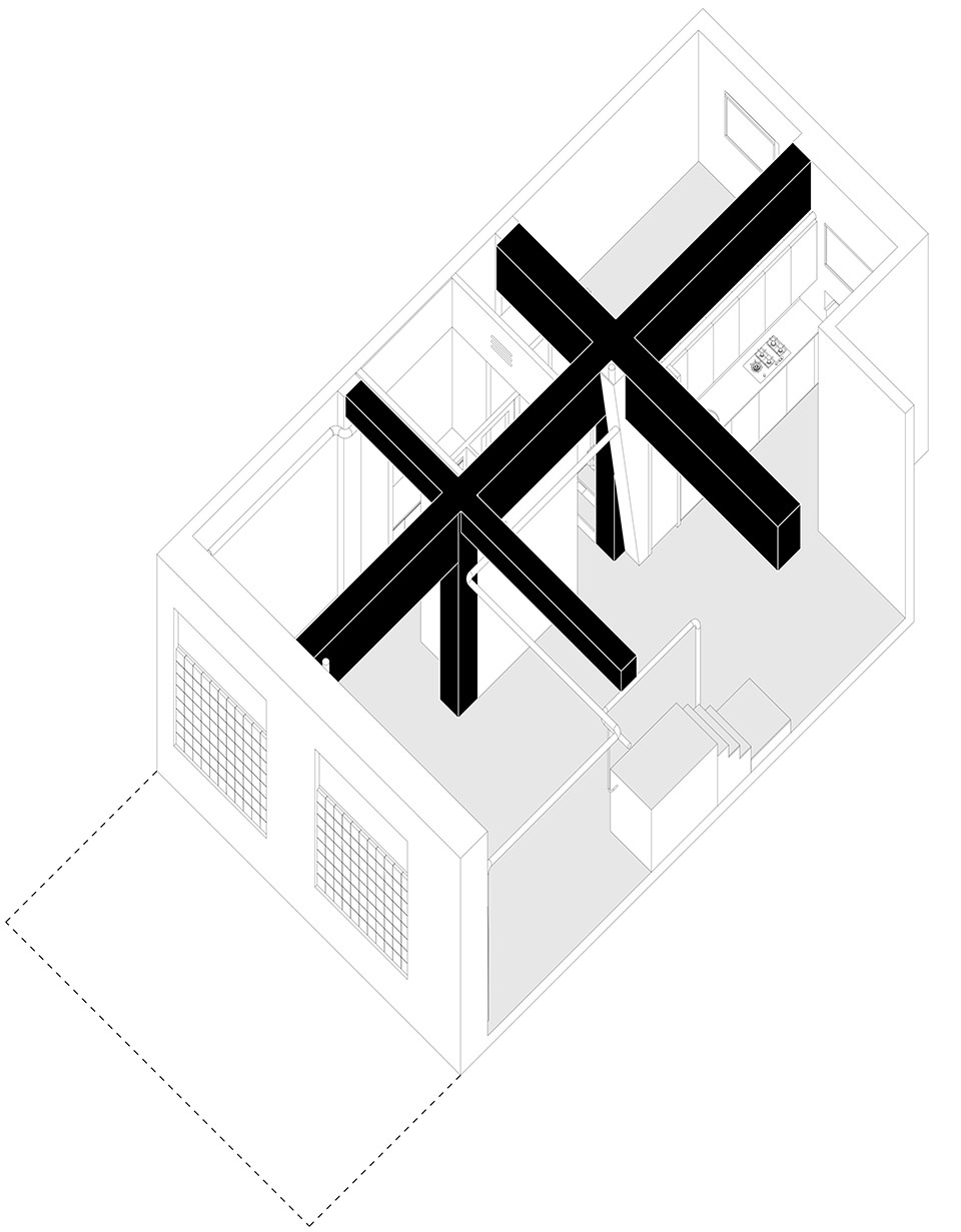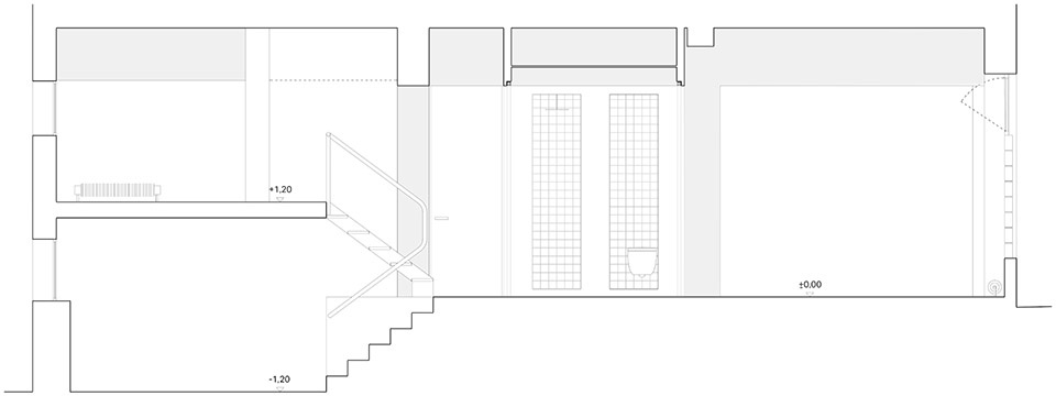 The transformation of this space starts with a fundamental idea: exposing the structure to enhance its spatial qualities and create a seamless connection between the two facades, linking the street to the inner courtyard while increasing natural light. The goal of the intervention is to preserve the essence of the original space, maintaining the strength of its concrete structure and blending it with materials that add texture, contrast, and functionality.