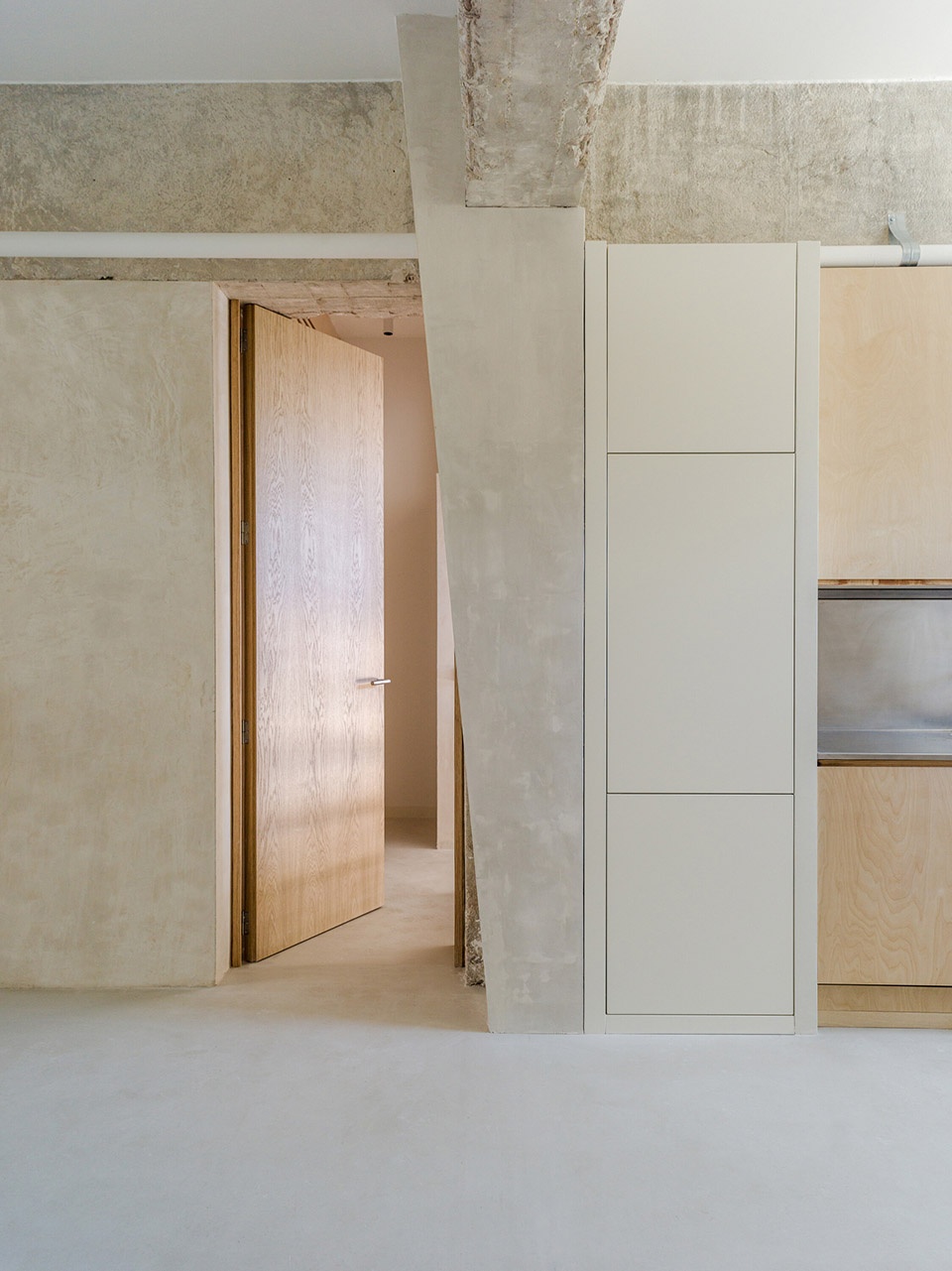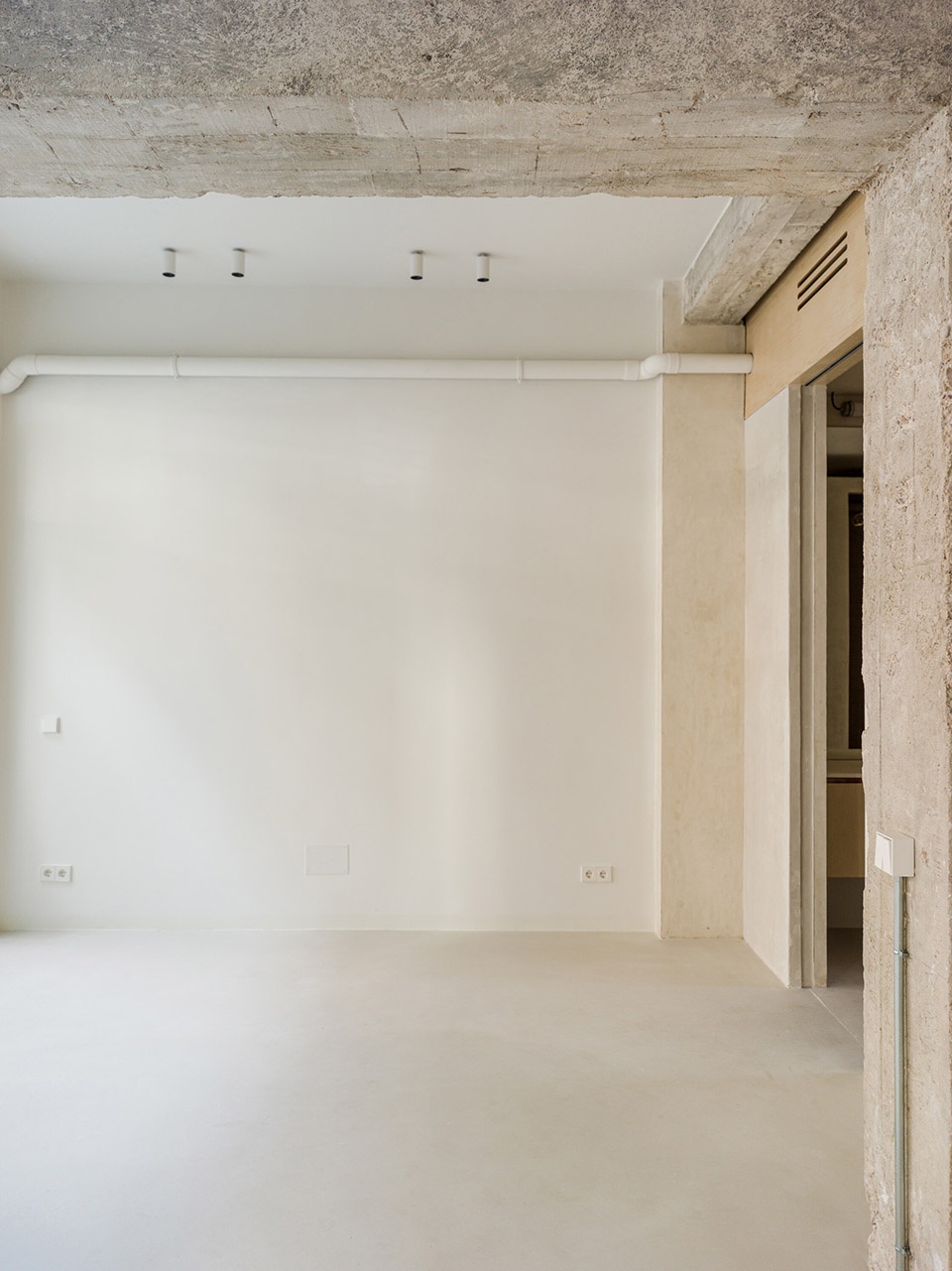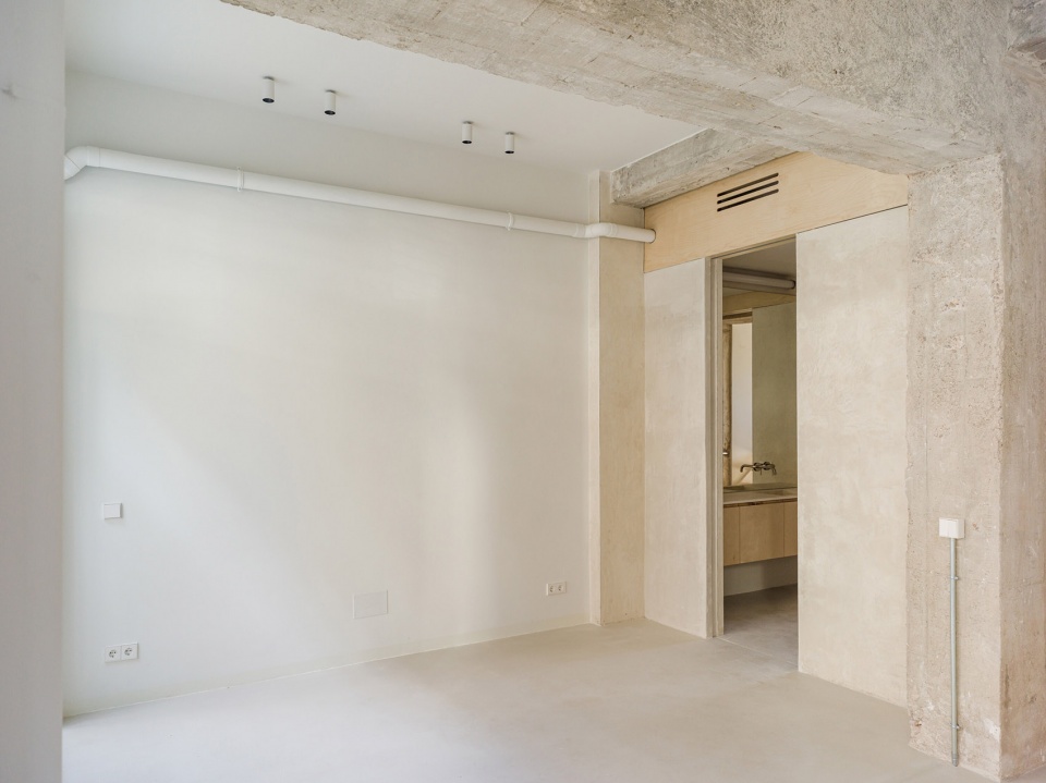 这次改造的核心理念是:暴露结构,以突出空间品质,并在街道与内院之间建立通透联系,同时引入更多自然光。整个设计旨在保留原始空间的本质,延续其混凝土结构的力量感,并通过具有肌理感、对比性和功能性的材料加以融合。