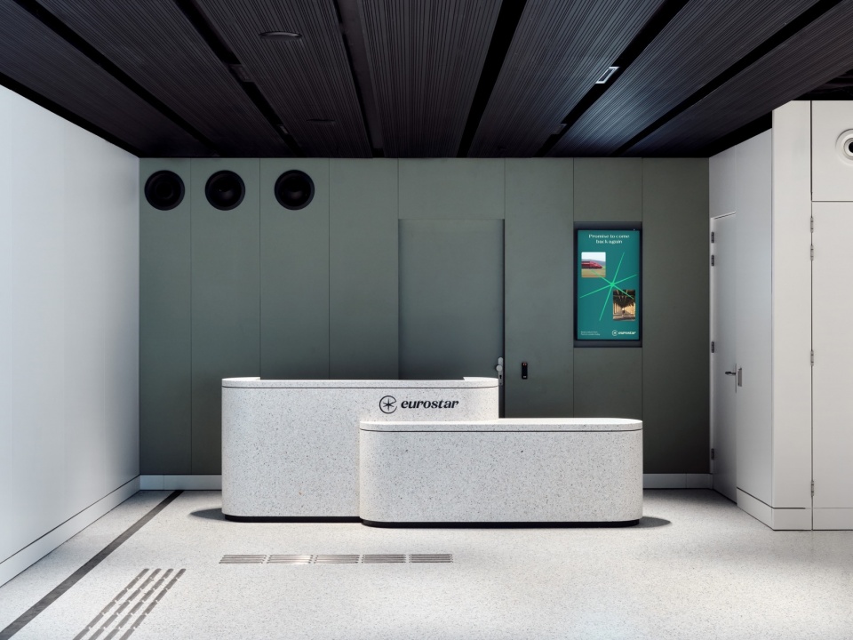 As a transport service that connects the continent, Eurostar plays a role in creating a shared European experience, with its stations serving as cultural landmarks. Cultural identity is therefore a key part of the brand’s character. Eurostar’s new UK Terminal is located in a national monument, that is Amsterdam Central Station, which is currently undergoing major renovation and redevelopment. The design seamlessly integrates into this large-scale station transformation and honors the monument by weaving it into the spatial experience of the building.
