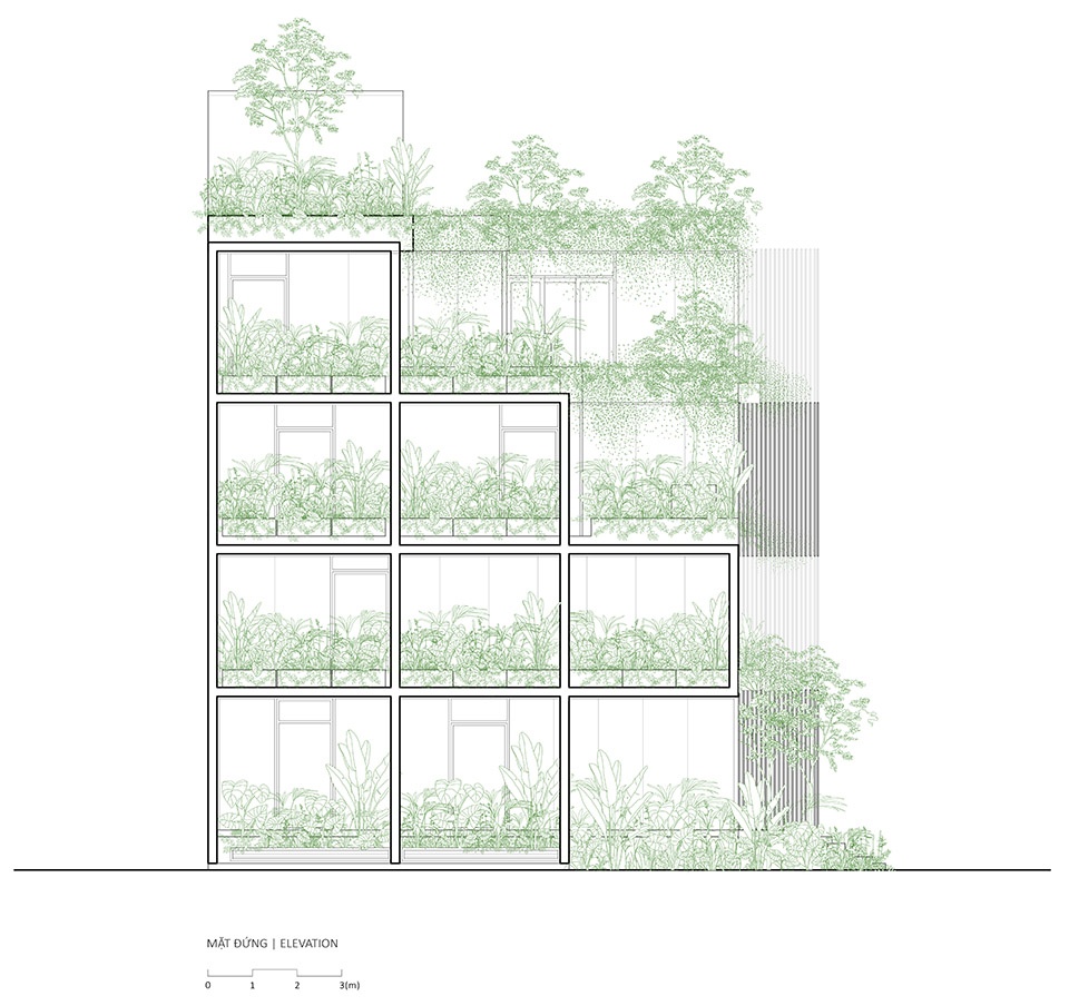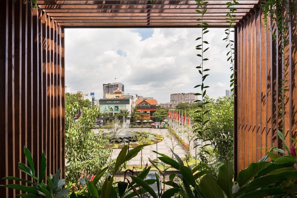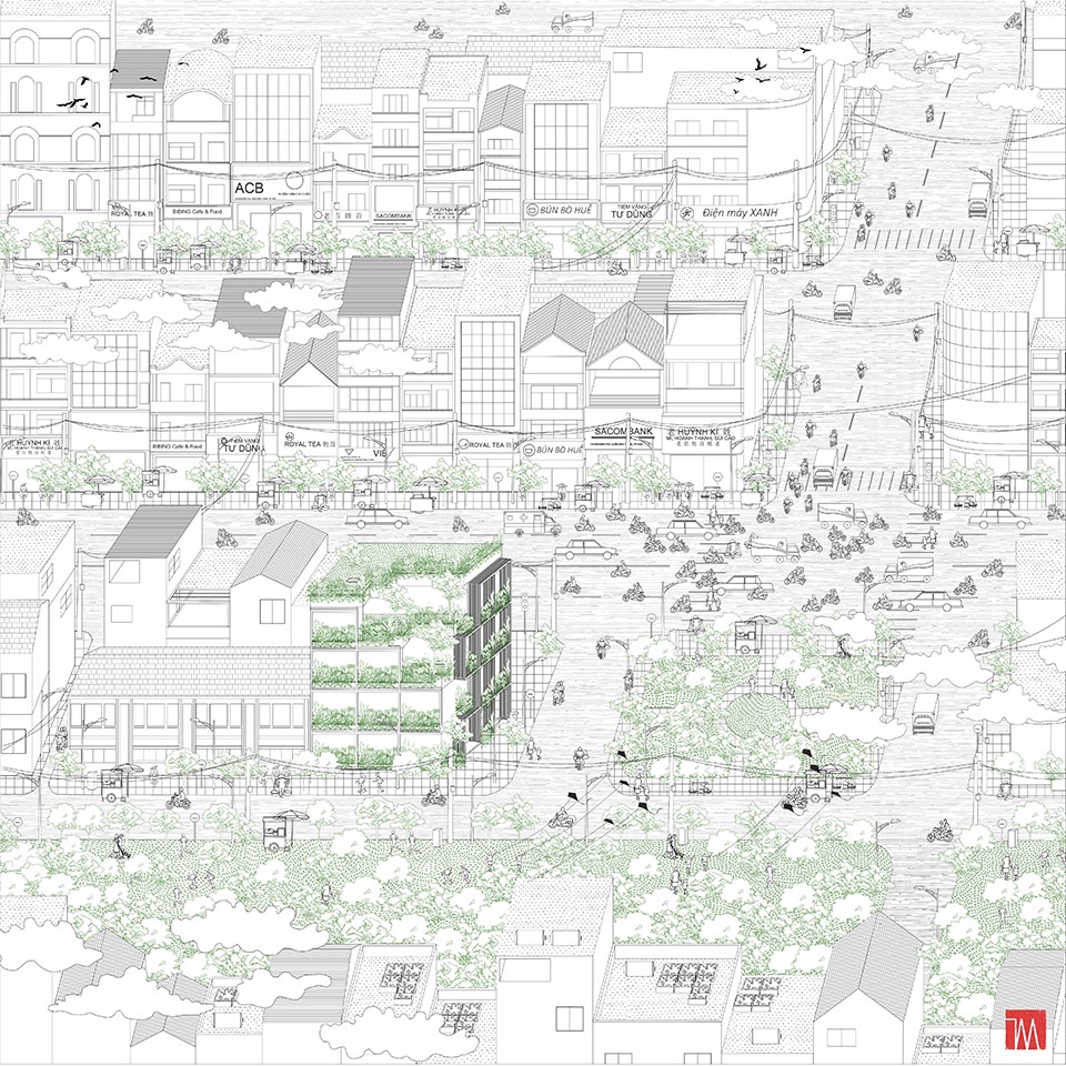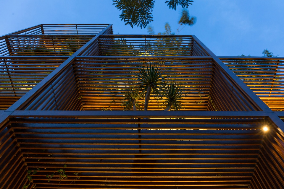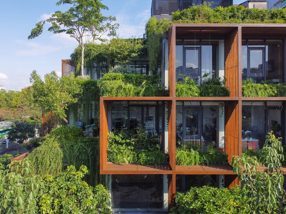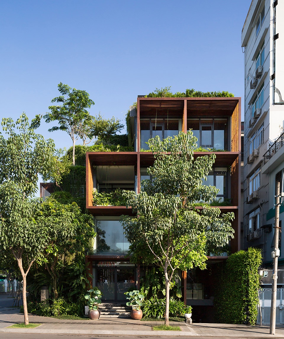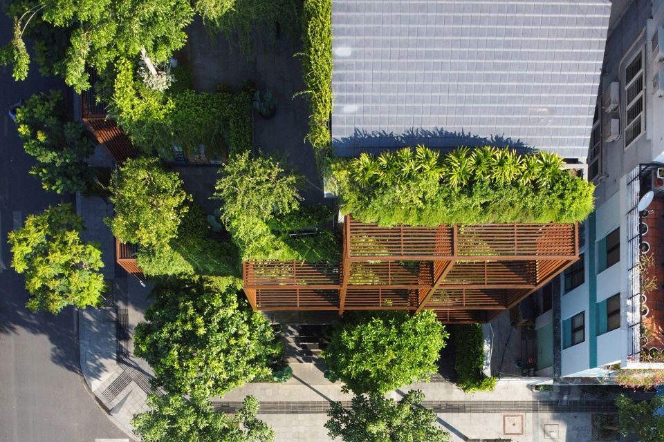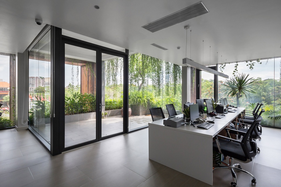 这种“绿色镂空体块”的设计,为位于胡志明这样热带气候城市中的办公建筑,提供了一种改善工作环境条件的可行解决方案。