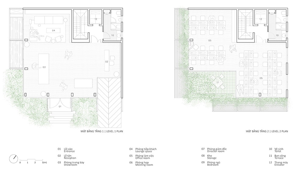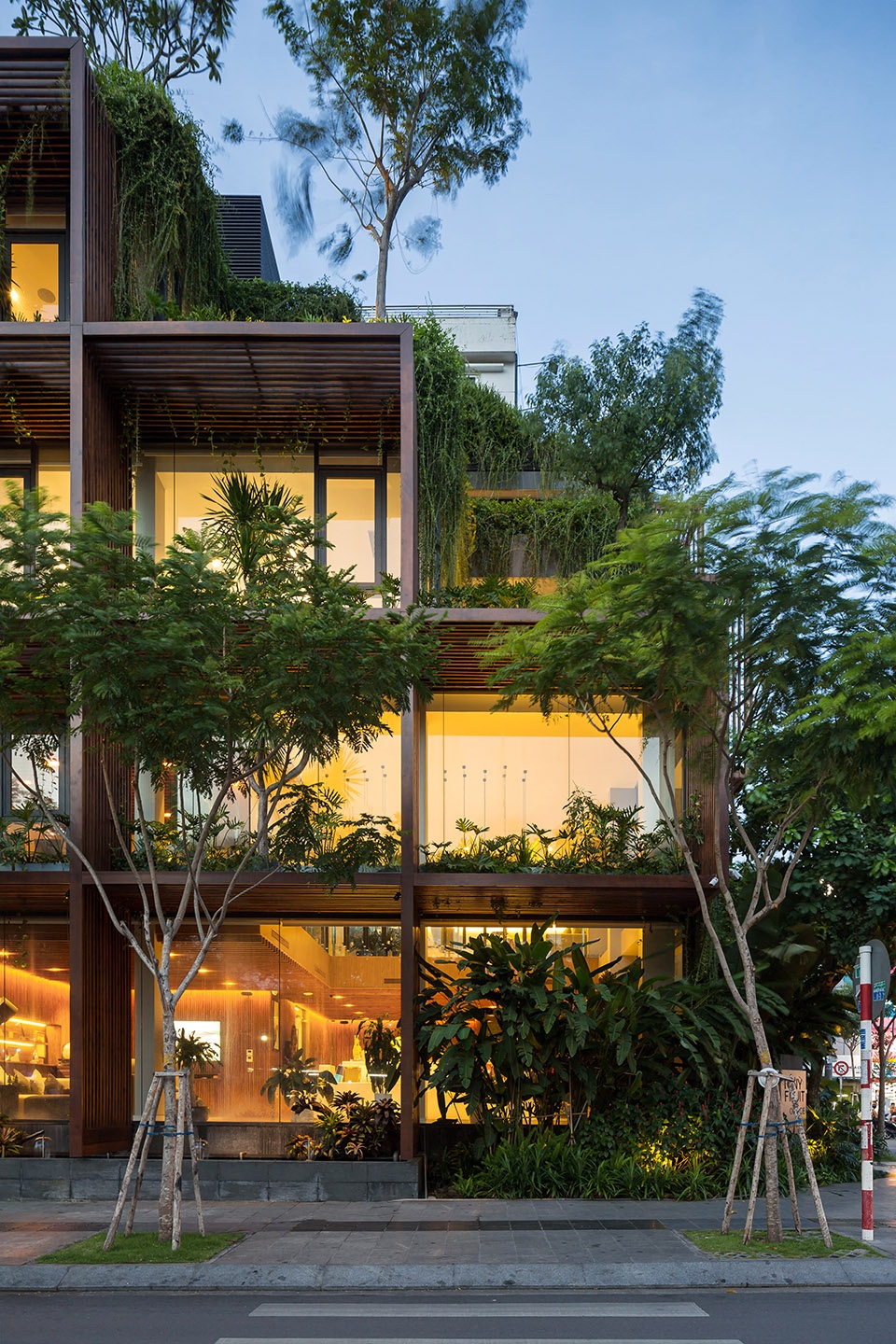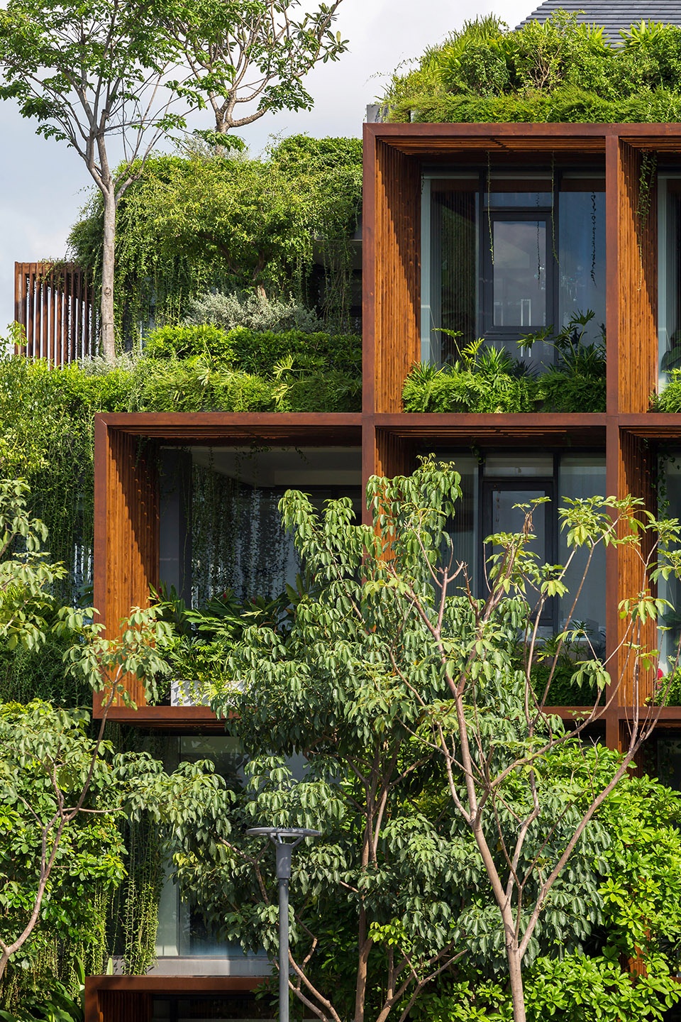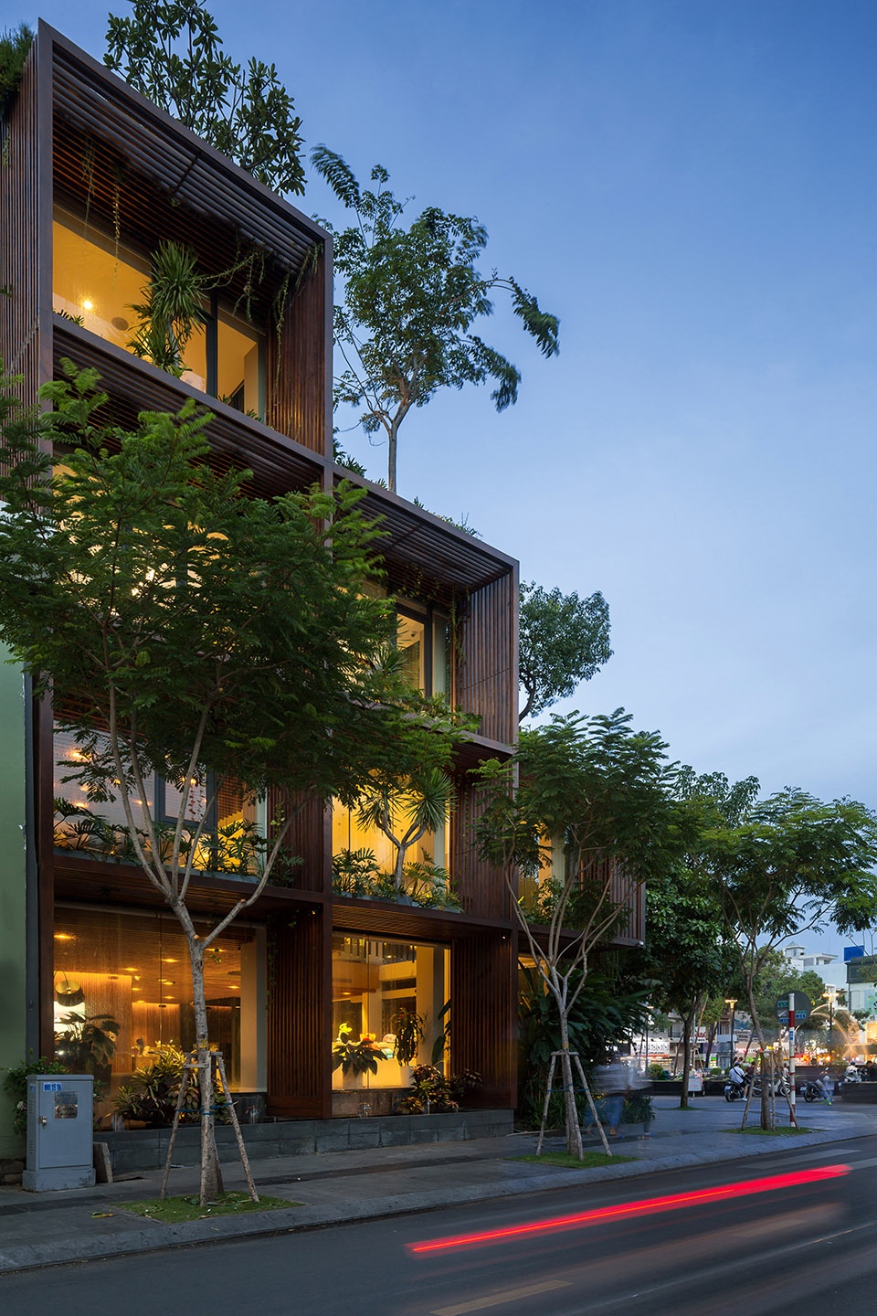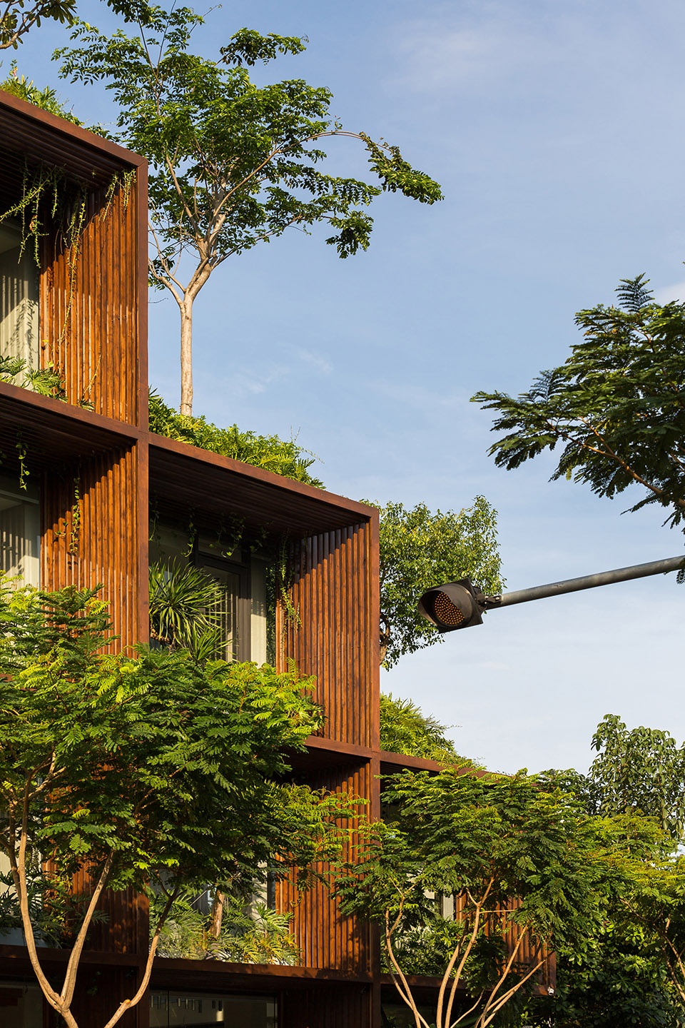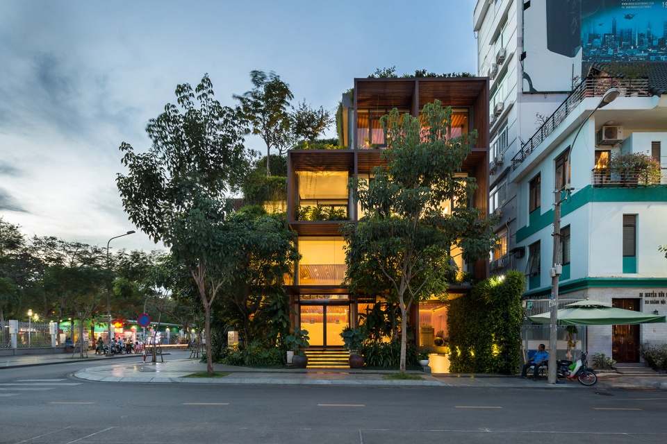 这种“绿色镂空体块”的设计,为位于胡志明这样热带气候城市中的办公建筑,提供了一种改善工作环境条件的可行解决方案。