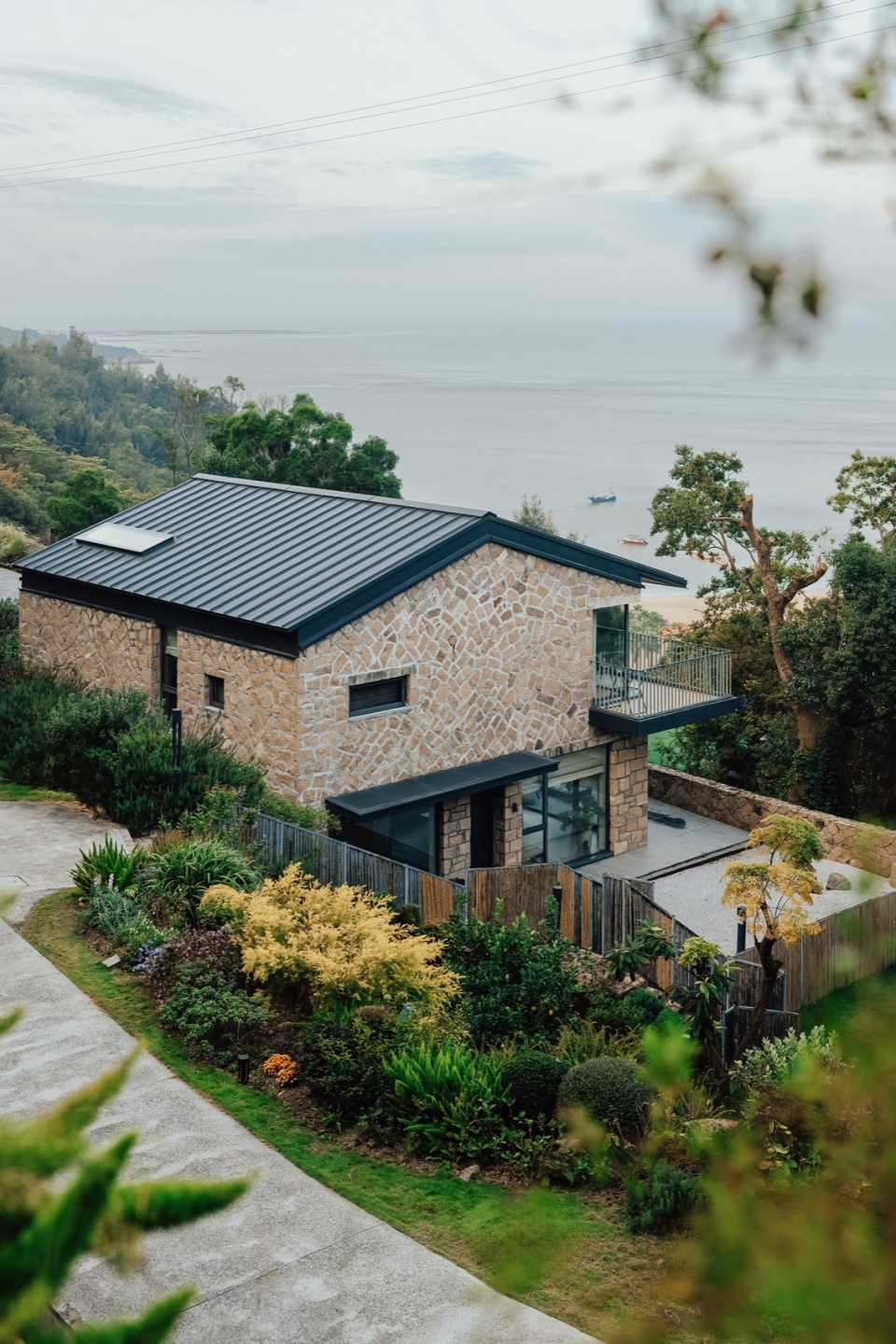 半山自然村坐落在背山面海的山坡上,传统村落通过梯田式布局与粗犷的虎皮石民居,形成抵御台风的天然屏障。场地东倚山峦、西瞰海湾,上下高差达60余米,既可俯瞰海岸村落的烟火气息,亦可远眺金沙滩的落日余晖,是兼具自然野趣与人文底蕴的理想栖居地。