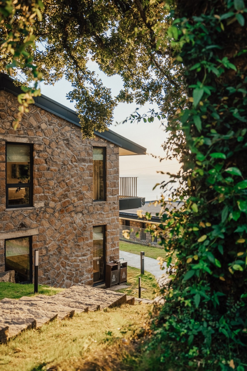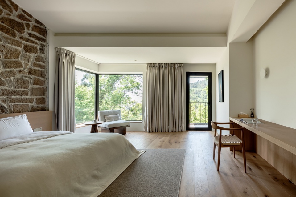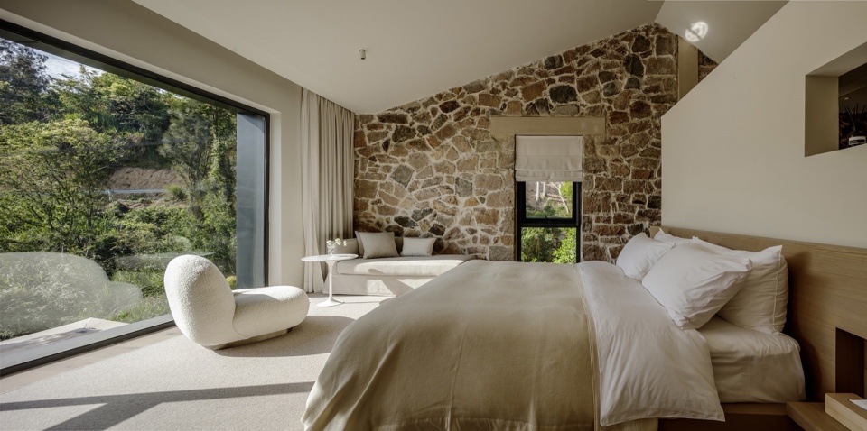 交通优化:保留原生高差,将上山小径改造为盘山接驳车道,串联公区与客房,既减少对地形的干预,又提升了入住体验的仪式感。