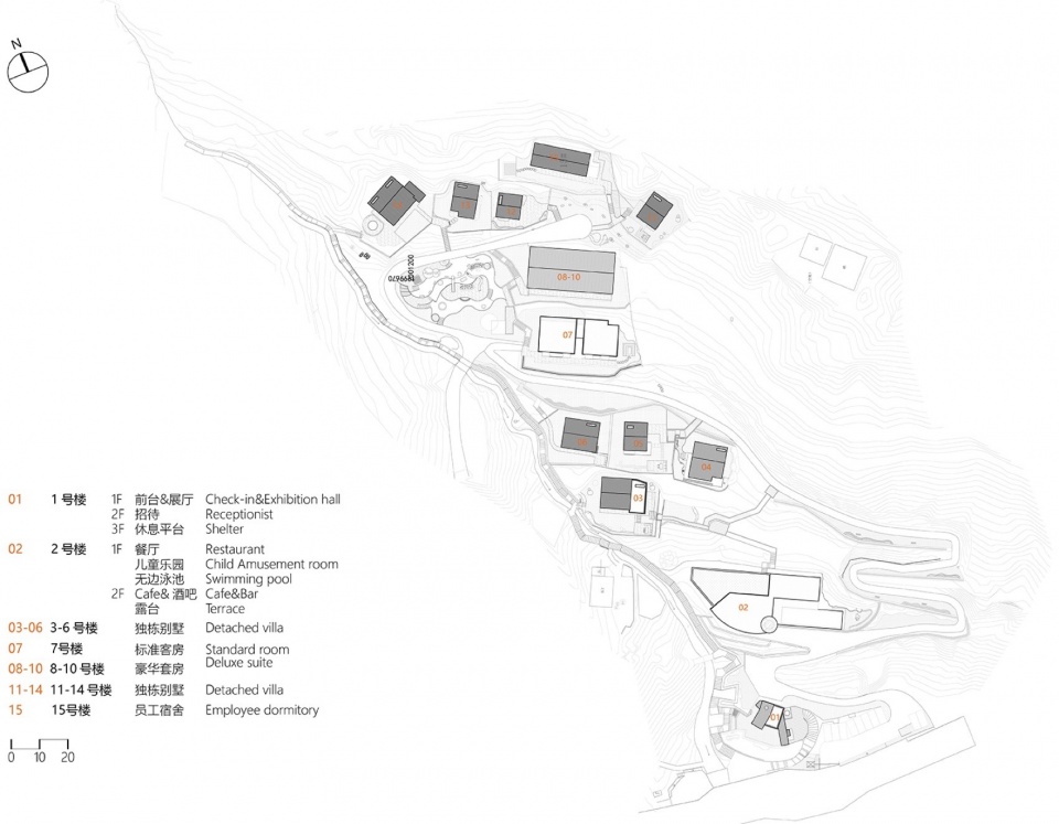 Guided by the core principle of “working with the terrain”, the design rigorously respects the original topography and village fabric: