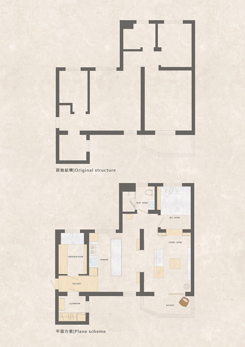 The semi-open bedroom eliminates redundant physical boundaries, allows light, air and vision to flow naturally within the area, so as to confuse the inherent boundaries between the “bedroom” and the “residence”, and enable an organic dialogue between the private space and the public area; redefines the spatial attributes of the bedroom, creates flexible and variable spatial relationships, and achieves balance between independence and openness by means of dynamic partitions instead of simple switching mode.