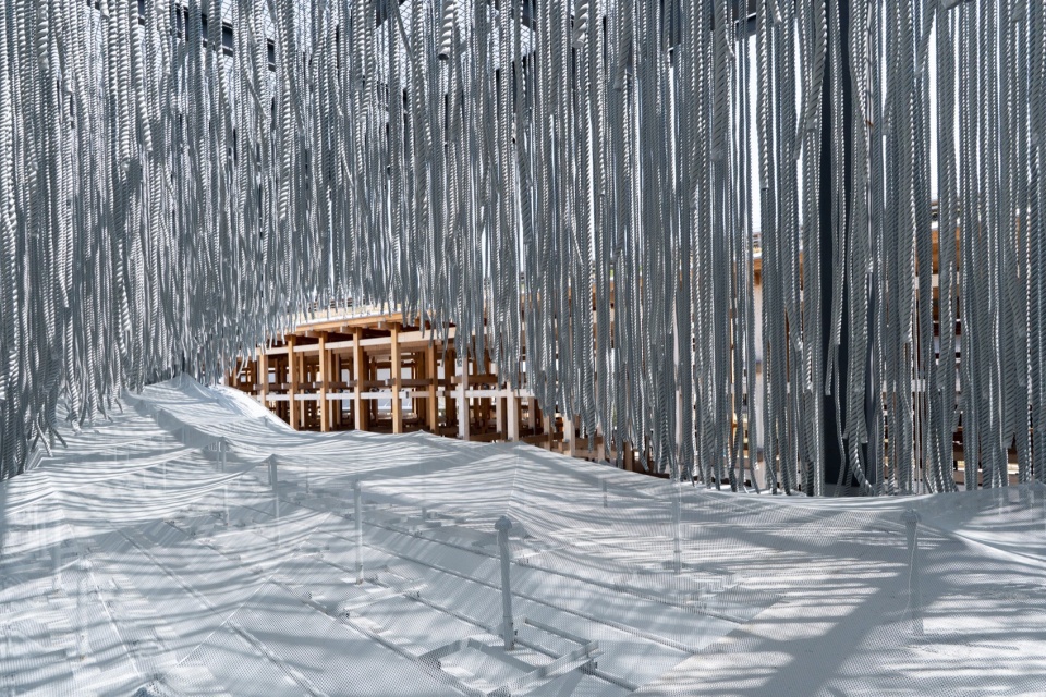 Architecture is perceived as a heavy, solid volume that is firmly fixed in site, but this Portugal Pavilion is an unprecedented kind of architecture that continues to move and vibrate. It is an architecture that is as free and light as a living creature, which replaces the lumps made of heavy concrete and steel structures that have conquered the world since the 19th century. By bridging Portugal and Japan, the two marine countries, we wanted to create a new, free and humane architecture.