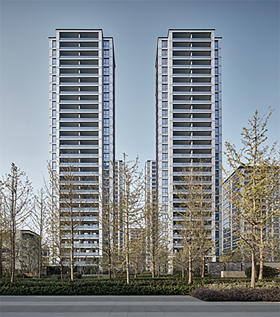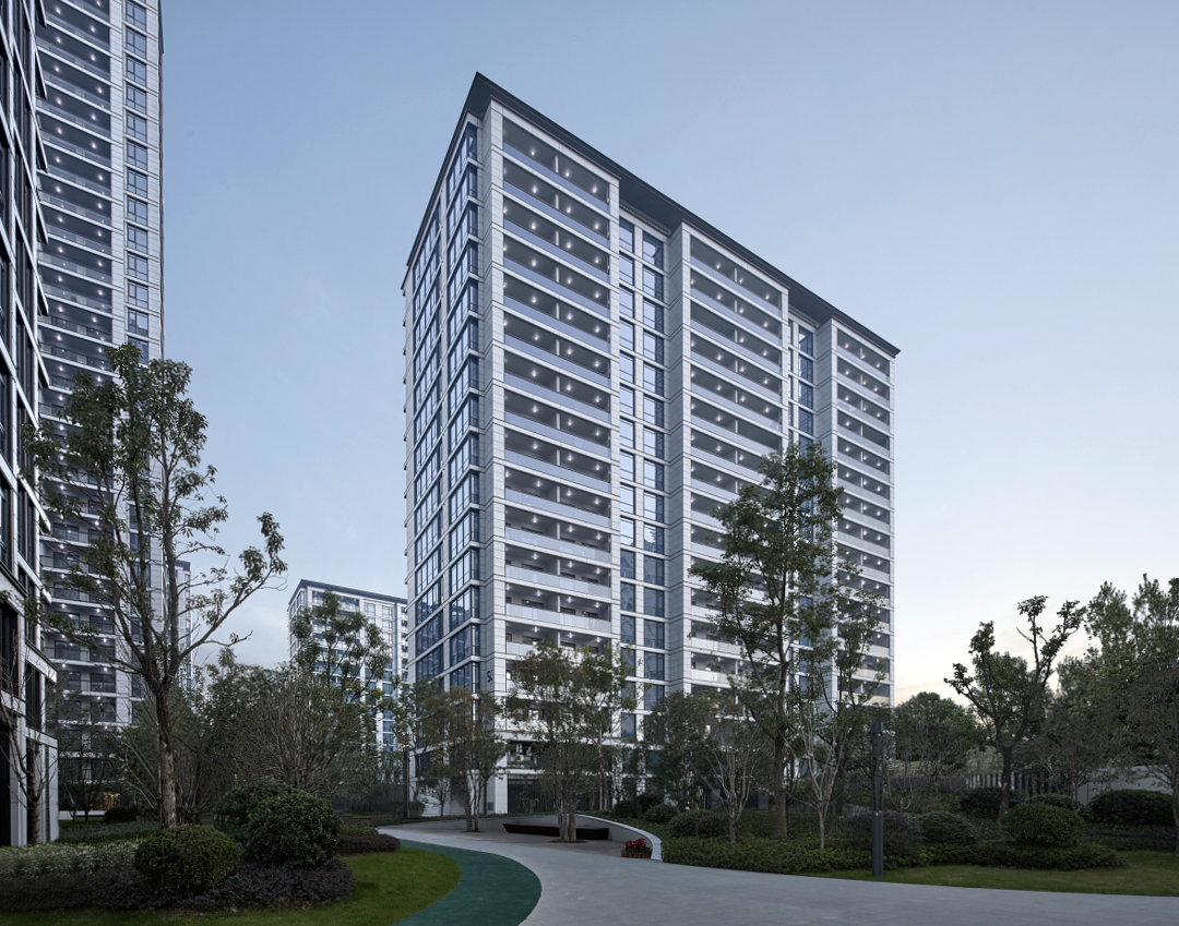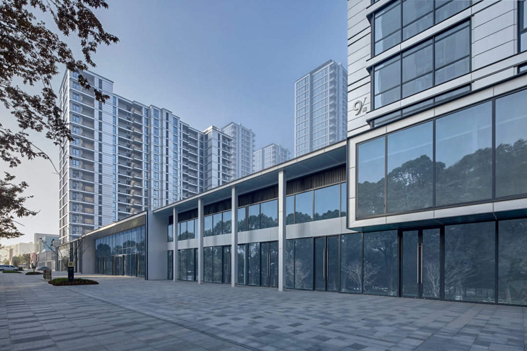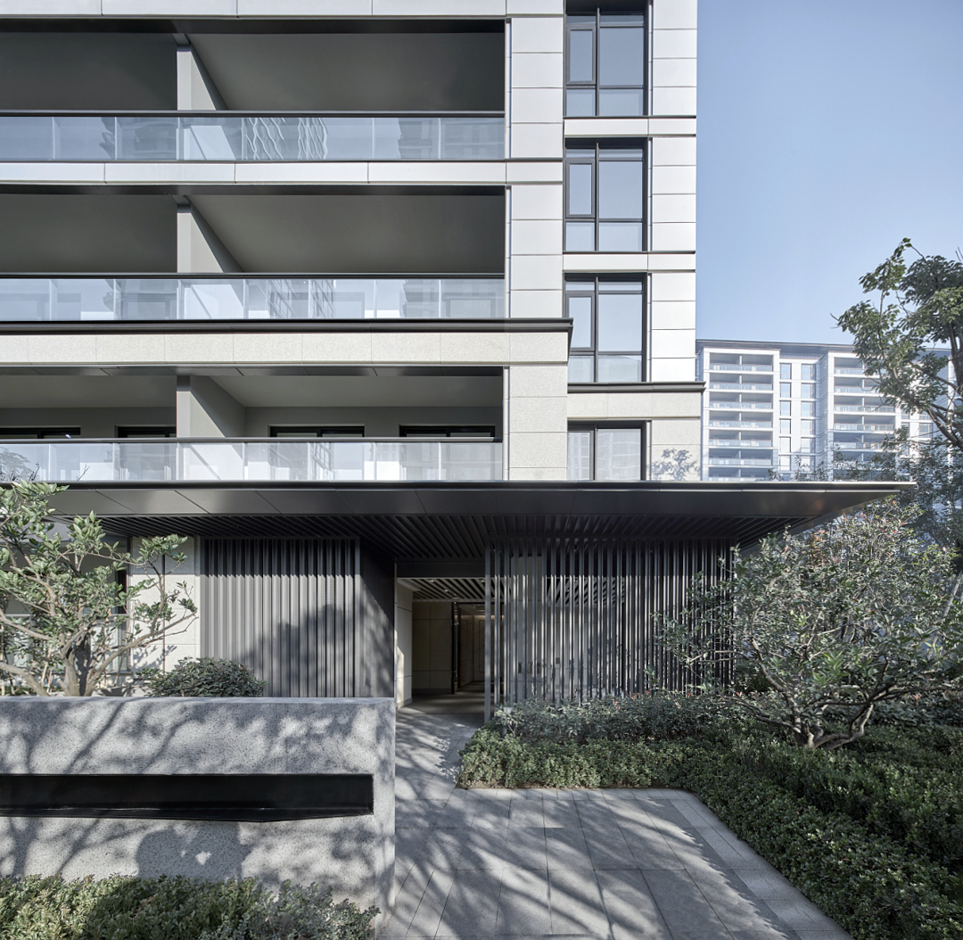The designer refines and reshapes the elements in the traditional buildings and interprets the aesthetics of Hangzhou under the modern background: the unified vertical high-rise frame visual elements eliminate the volume differences between the two types of single buildings, making the buildings in the community more holistic; Remove too miscellaneous decorative elements, and only retain the horizontal moldings between layers to implicitly enrich the visual details; Traditional space components such as watchboards and colonnades are abstracted to optimize the overall building at the top and bottom, so as to create a straight and elegant visual atmosphere.