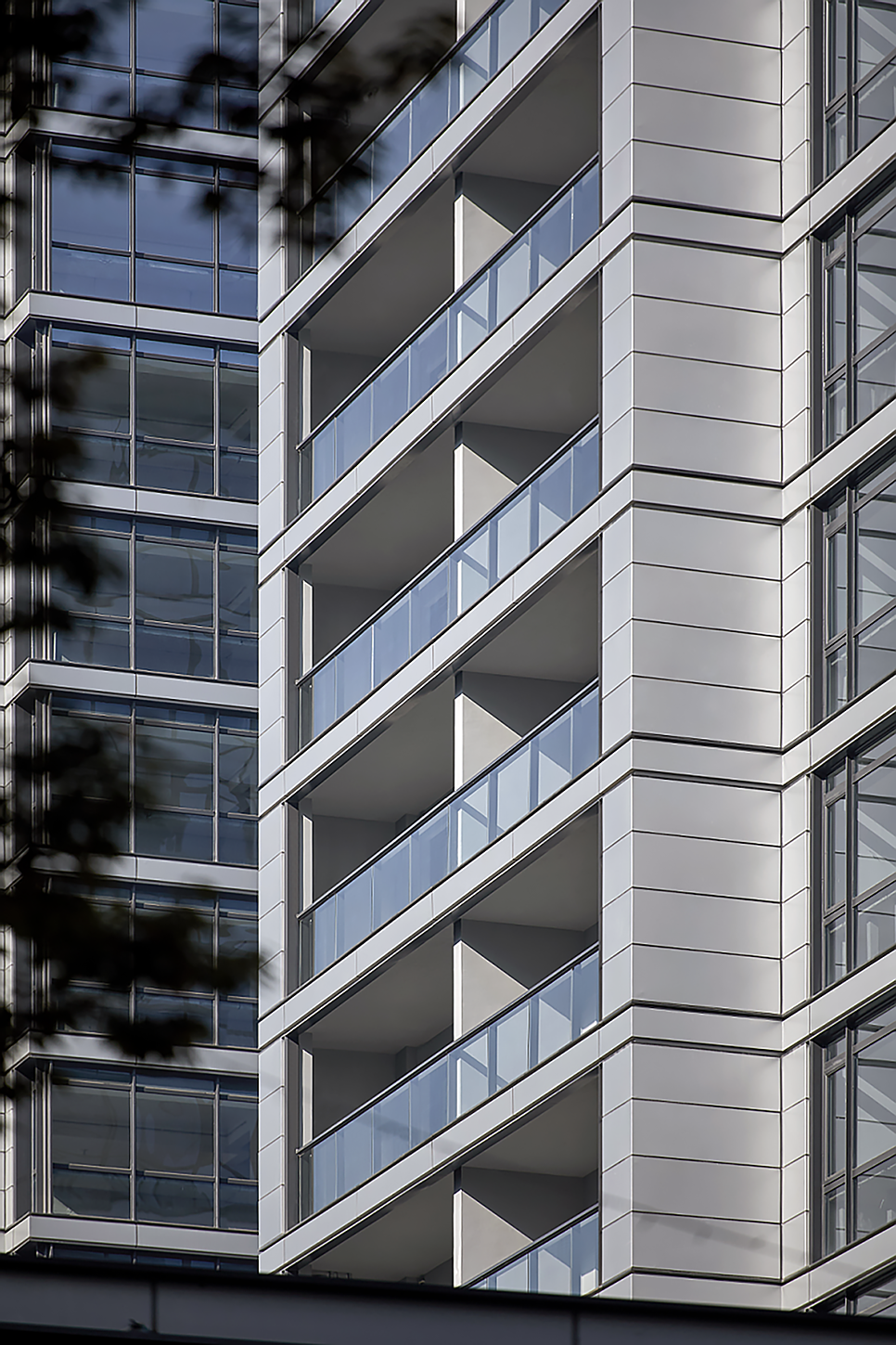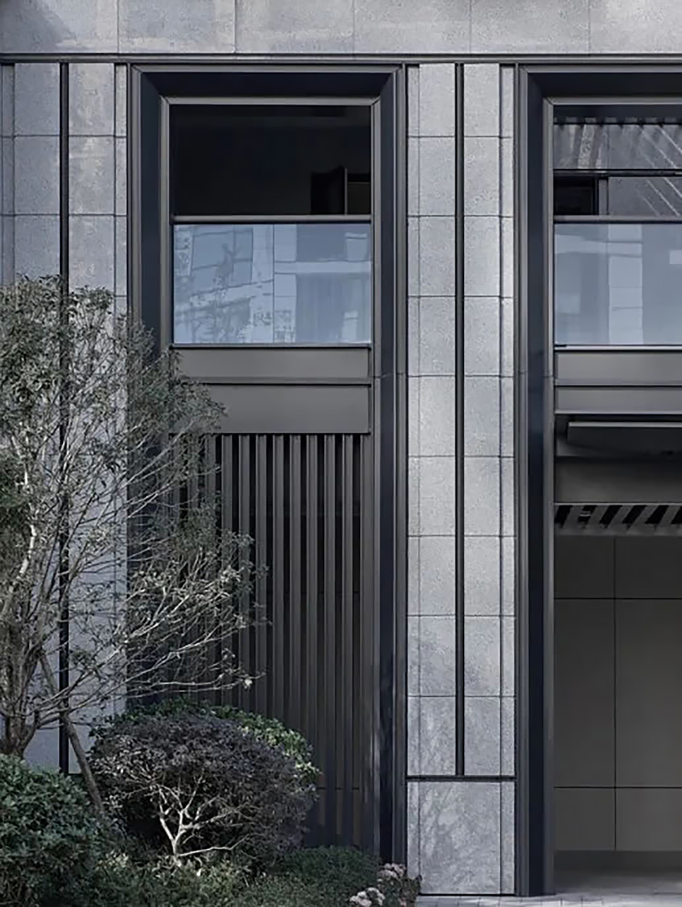3层以上为铝板与铝型材搭配,层次鲜明线条硬朗