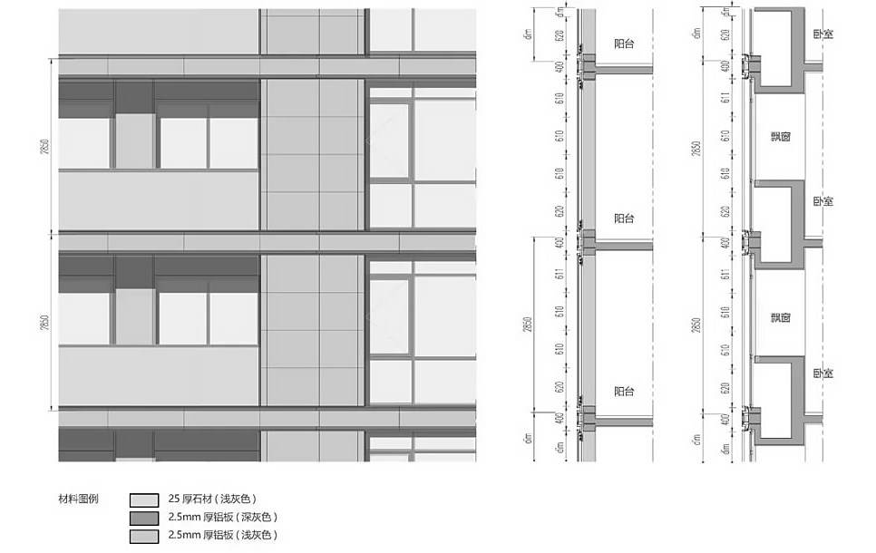 Above 3 floors are aluminum plates and aluminum profiles, with distinct layers and strong lines