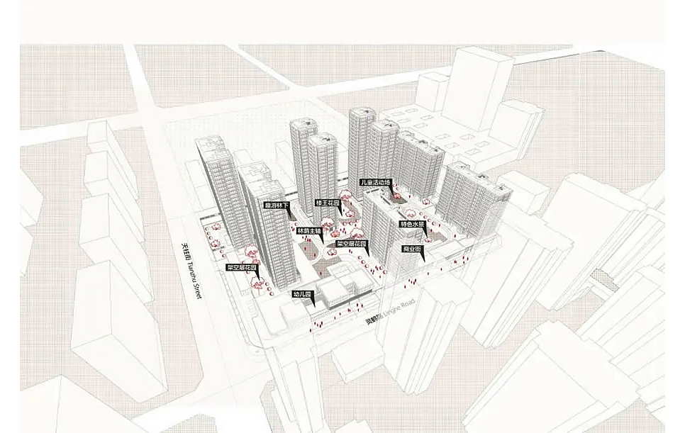 In the design of the Tianyang Hangzhou azure project, the designer tried to restore the purest community atmosphere by creating a highly complex urban landscape: the focus of the design was re placed on the construction of life based on people and space. Through rich life scenes and activities, homes, parks, activity fields, and business blocks were intertwined, so that vitality and communication penetrated the wall and spread in the fragments of residential areas and cities, Create a 7 * 24 community node with high vitality and complex landscape.