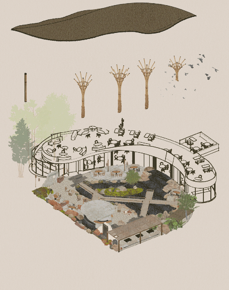 In the design, we intentionally broke away from the traditional sense of enclosure, allowing the space to grow organically like a living plant through a semi-open structure.