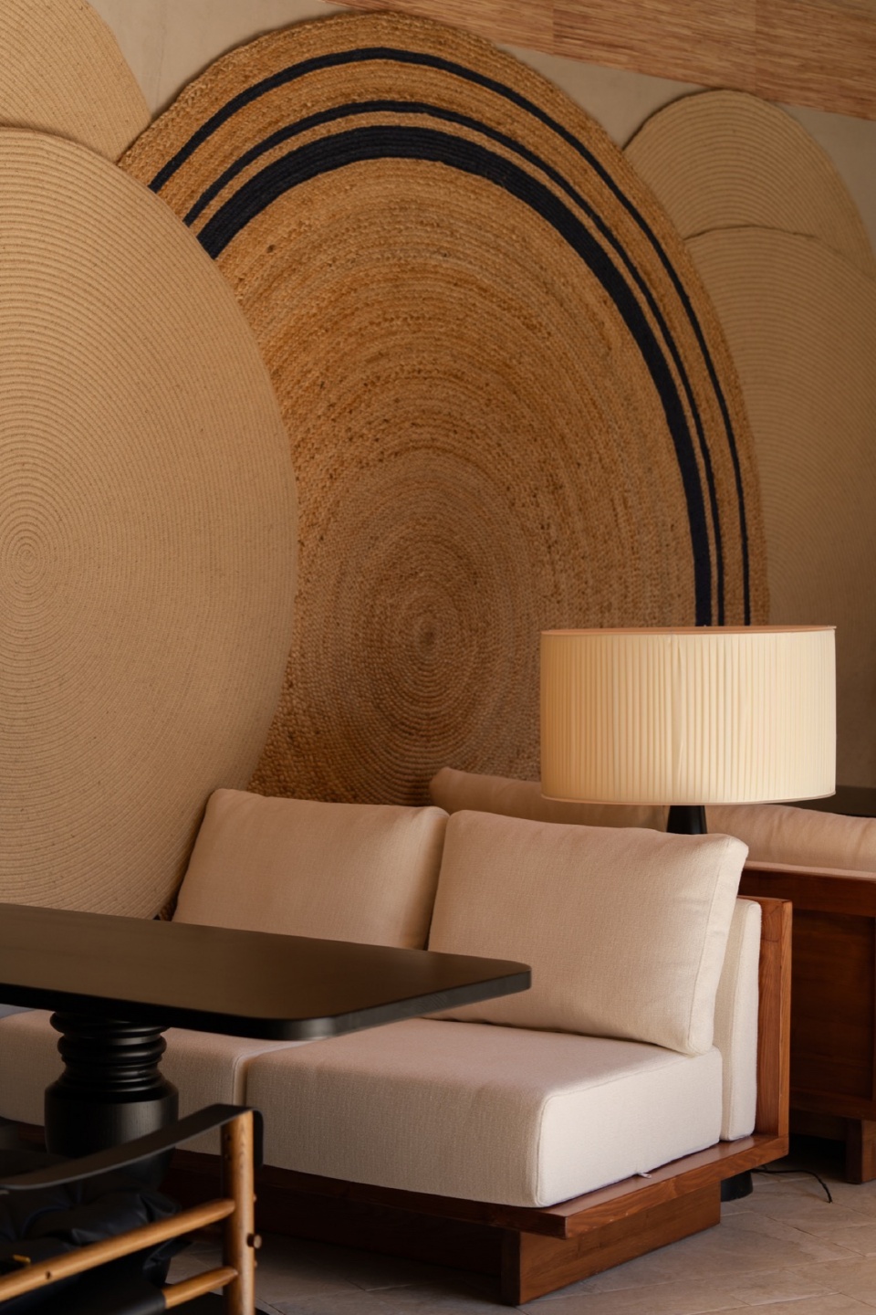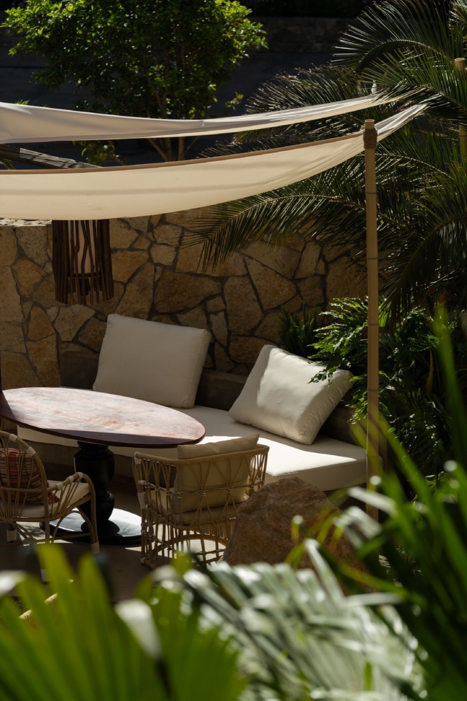 Material selection serves as the spatial grammar that articulates the atmosphere. Rough-hewn stone walls contrast vividly with the delicate bamboo-woven ceiling—not through clichéd displays of ethnic motifs, but by evoking cultural resonance through material memory and spatial storytelling.