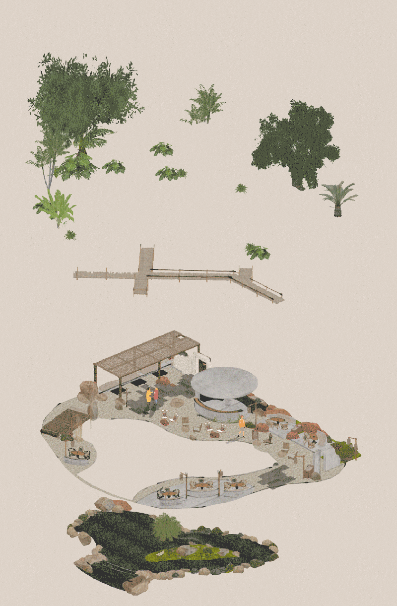 In response to the surrounding environment, we wrapped the garden in native bamboo nodes, using winding pathways and lush vegetation to construct a three-part spatial rhythm of shelter–transition–reveal. This 300-meter entrance journey becomes a ritual-like passage of psychological cleansing.