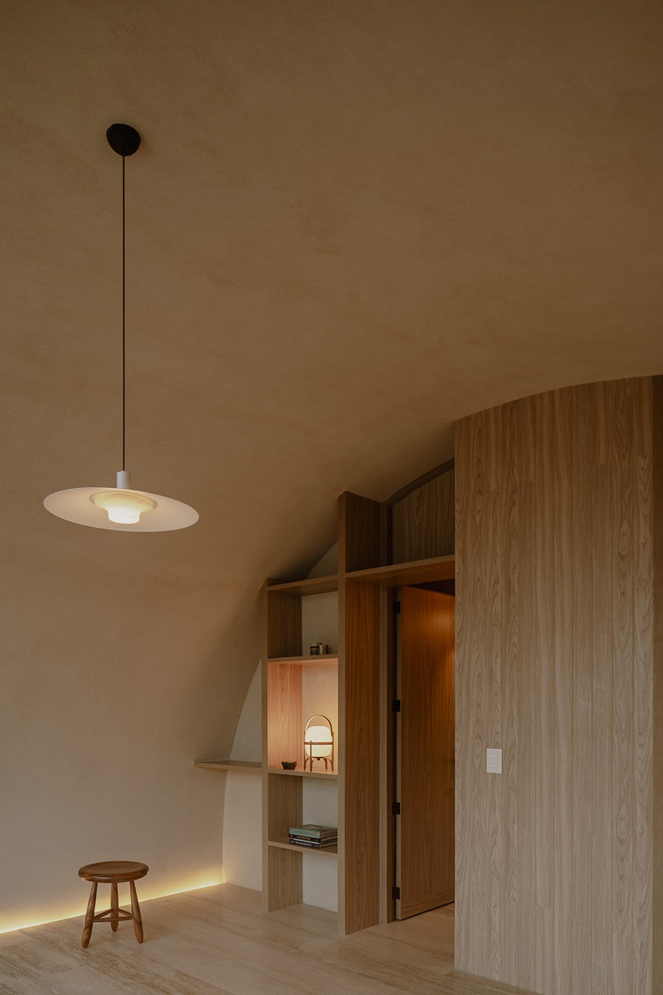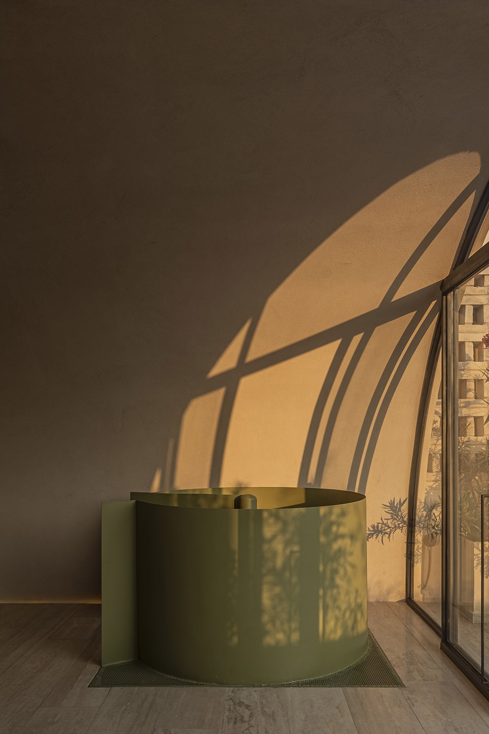 在材料选用上,项目强调本土性与手工技艺。所有建筑元素均采用国产材料,并由工匠精工制作,从而形成一组自然色调的材质语言,包括国产大理石、墙面泥土质感饰面、手工制作的砖隔墙等——这些都与墨西哥传统建筑的丰富性与在地性气质相呼应。