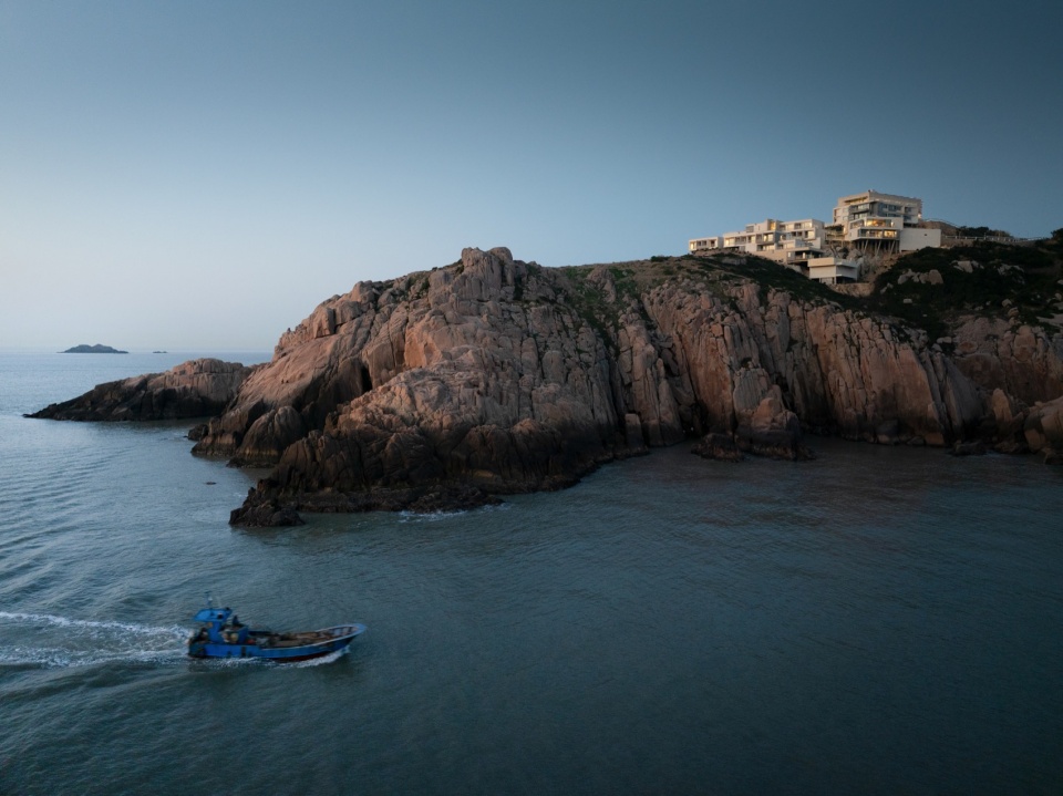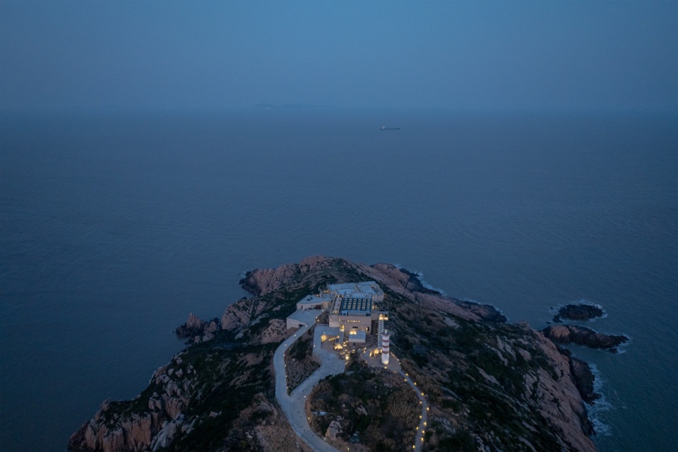 This project is located on Huanglong Island, one of the Shengsi Archipelago islands. It is only a 15-minute ferry ride from the main island of Shengsi Archipelago. Huanglong Island is named for its majestic mountains and yellow soil, which from a distance resemble a yellow dragon coiled by the sea. Compared to more well-known areas of Zhoushan Archipelago, such as Zhujiajian, Putuo Mountain, and Dongji Island, Shengsi was developed relatively late. However, because it is less commercialized, it offers a more leisurely and secluded experience, and its popularity has been gradually increasing in recent years. The hotel is located next to the old lighthouse in Dongzuitou Village, Huanglong Township, surrounded on three sides by the sea, adjacent to rock formations and the Chibo Mountain scenery, and it offers an unobstructed 270-degree sea view.