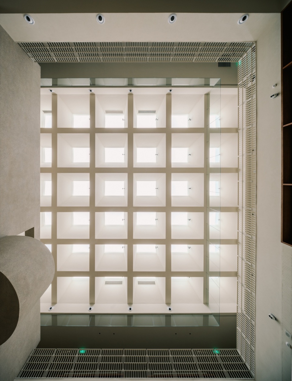 When guests enter the hotel, the first thing that catches their eye is the visually striking open space and the rocky atrium. We have leveled the gaps in the previously inaccessible rocky area, using gravel and leftover stones from the construction foundation as stepping stones, allowing guests to gradually explore the rocky area via stairs. As they transition from flat ground to rocks, the sudden openness of the space allows guests to truly perceive changes in scale and light. Inside the atrium, large-scale rocks and sunlight streaming through the open grid beams create a unique interplay of light and shadow, enabling guests to experience the island’s distinctive geological features indoors, as if they were on a natural miniature island.