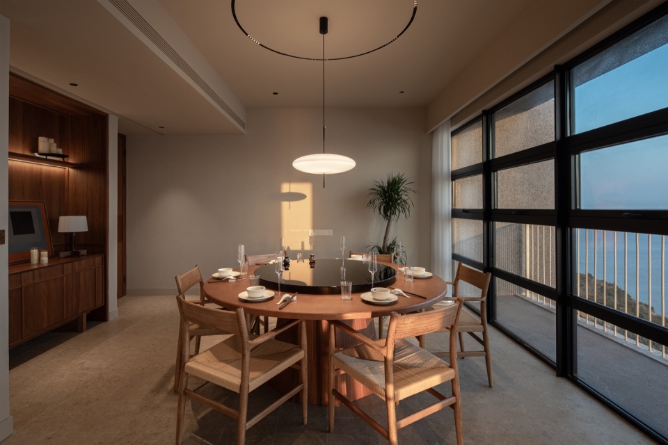 In the restaurant area, we have recessed the facade boundaries of the private dining rooms to form independent balconies, where guests can step out to enjoy the expansive sea views while dining.