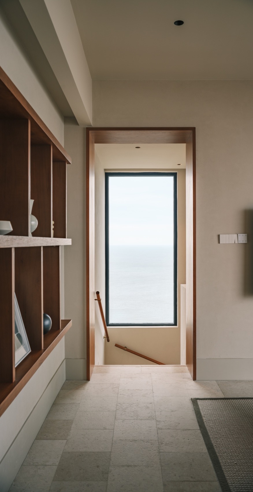 As a leading domestic brand in the boutique lodging industry, Lost Villa aims to boost the island’s tourism economy through this project on Huanglong Island in Shengsi, thereby enhancing the income of local residents and creating a positive economic cycle, in line with Lost Villa’s consistent ESG (Environmental, Social, and Governance) philosophy. Due to the site being located on rocky cliffs, large machinery could not be used for construction, so all materials had to be dimensionally controlled, limited to sizes and weights that could be handled by two workers. By the time we took over, the main civil structure of the project was largely completed. We needed to optimize the dimensions and proportions of the building’s doors and windows and reconsider the exterior wall materials. The island’s extremely humid climate and the occurrence of two super typhoons annually imposed high demands on the building’s wind pressure resistance and moisture and corrosion resistance.