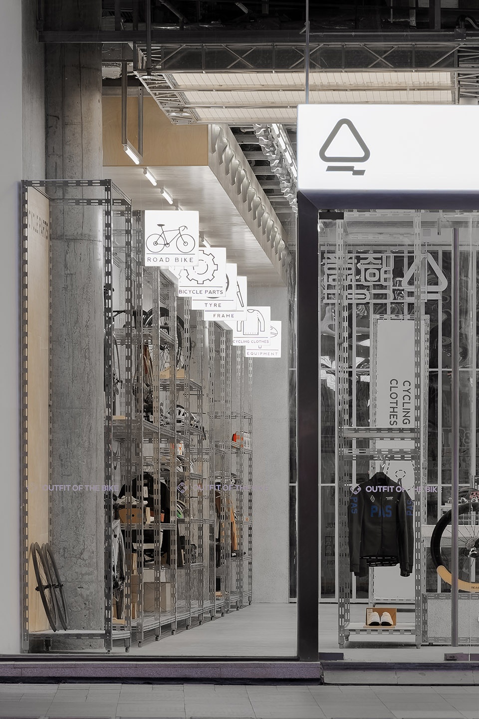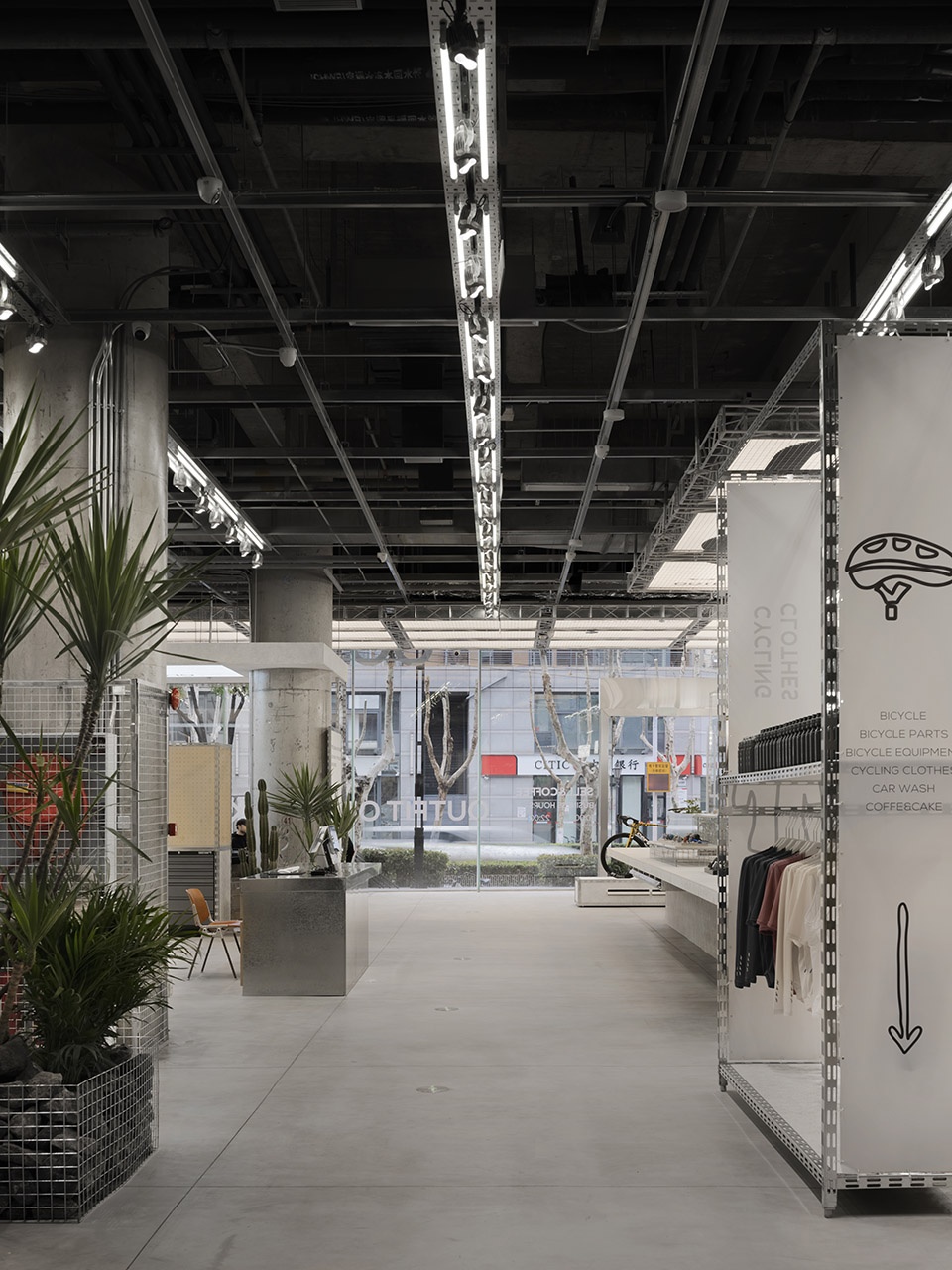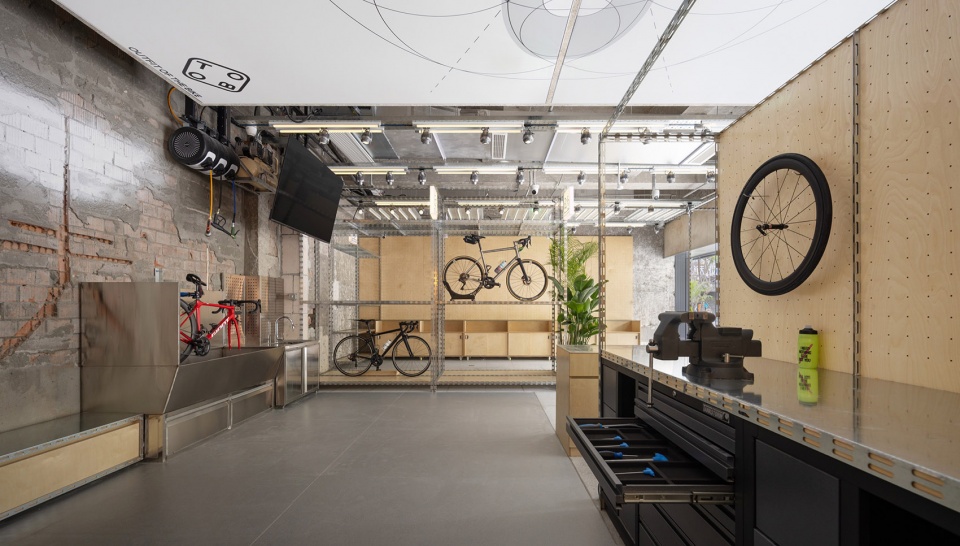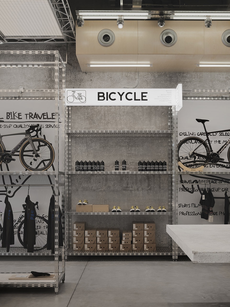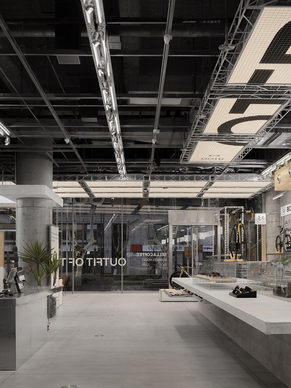它不只是一间店铺,而是骑行精神的浓缩舞台。粗粝的工业考古质感与灵动的数字脉搏在此刻共生;模块化的骨架承载着商品、工坊、聚会的万千可能;透明开放的空间剧场,让冰冷的器械有了温度,让精密的工艺直抵人心。从砖墙的肌理,到升降的货架,再到地面的光迹、耳畔的胎噪……每一处设计都在低吟:骑行不止于脚下,它早已融入空间骨血。踏入OOTB,你并非过客,而是骑士归港,引擎暂歇后,精神仍在自由延伸——直至下一个黎明,下一段未知的轨迹。这便是骑行赋予生活的高光,也是OOTB为这份自由筑造的精神巢穴。