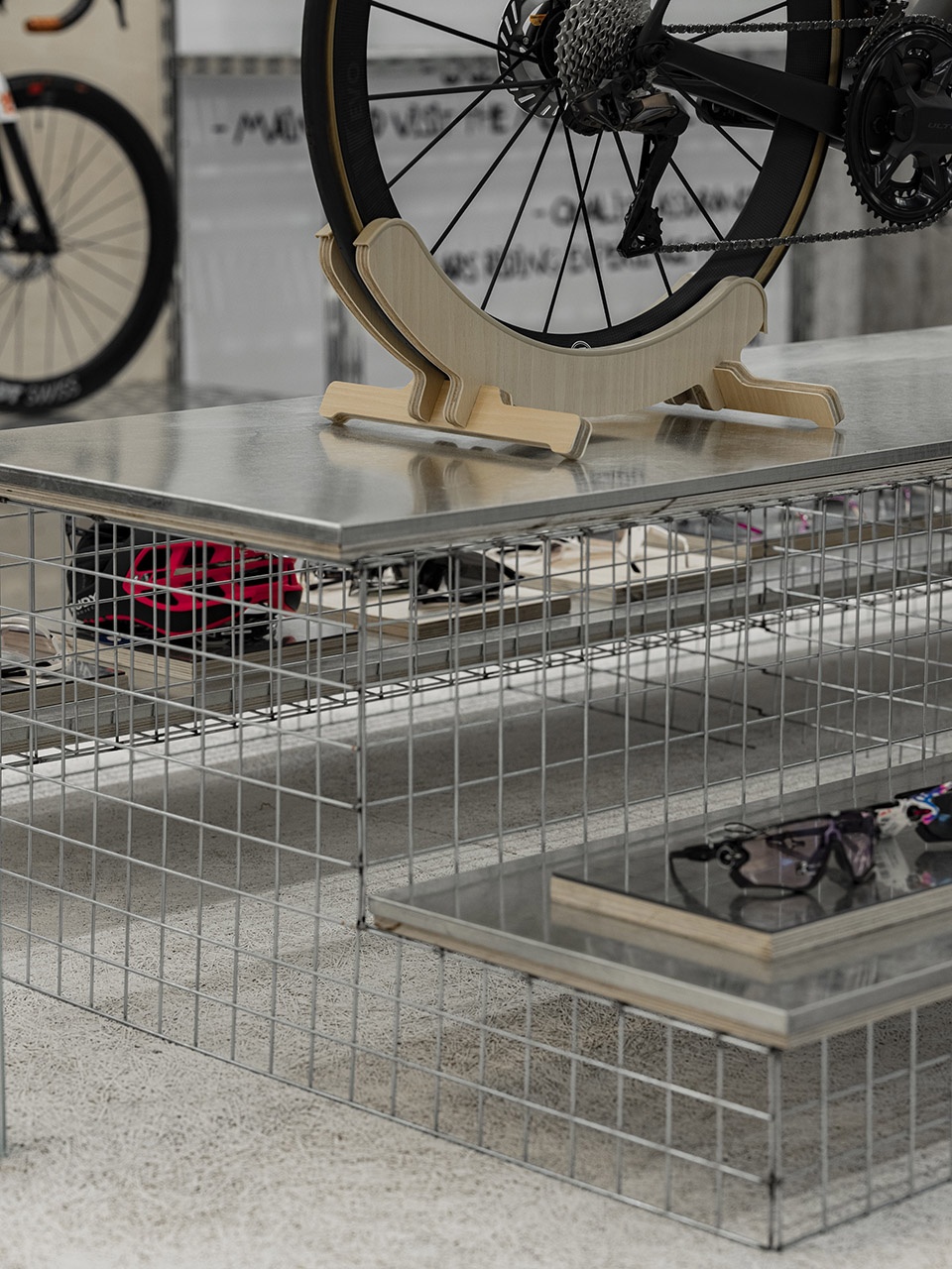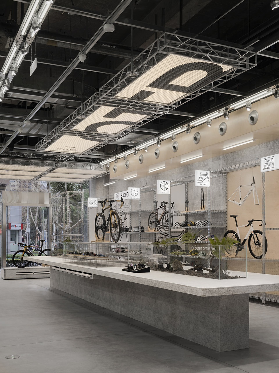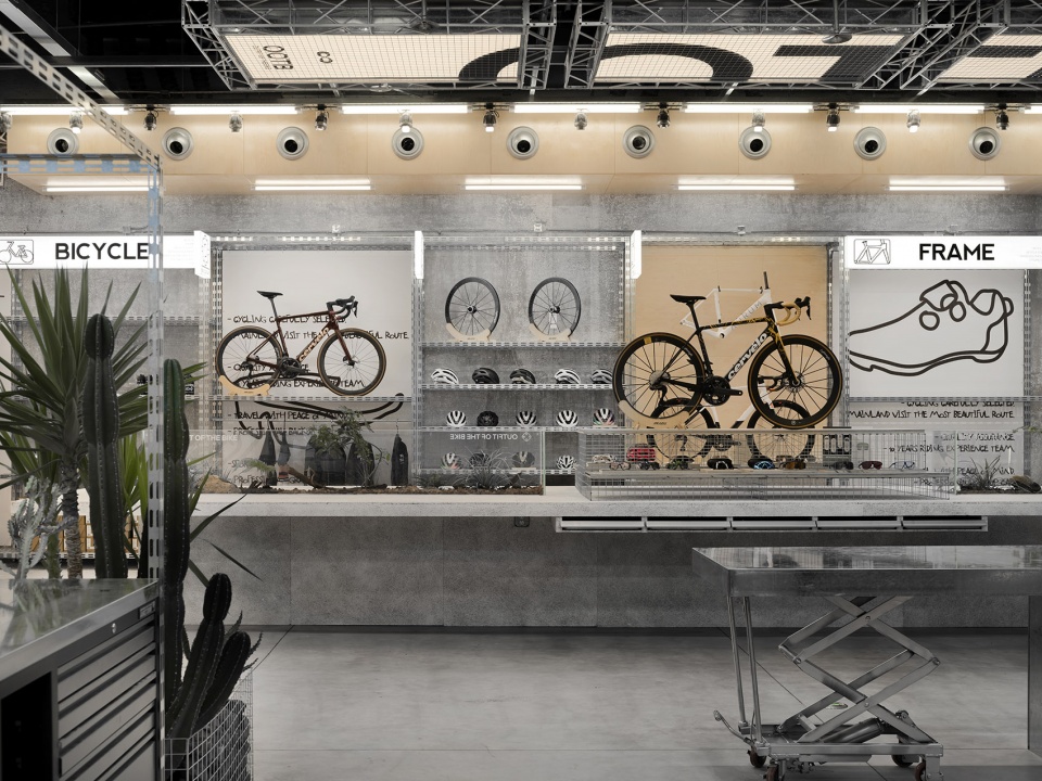 Roots: Deeply grounded in “evolving industrial archaeology.” Shared industrial elements (exposed brick with replicated textures, visible conduits, cold-galvanized aluminum sheen, tactile birch wood, modular skeletons) embody the brand’s unshakeable foundation, honoring cycling’s manufacturing heritage.