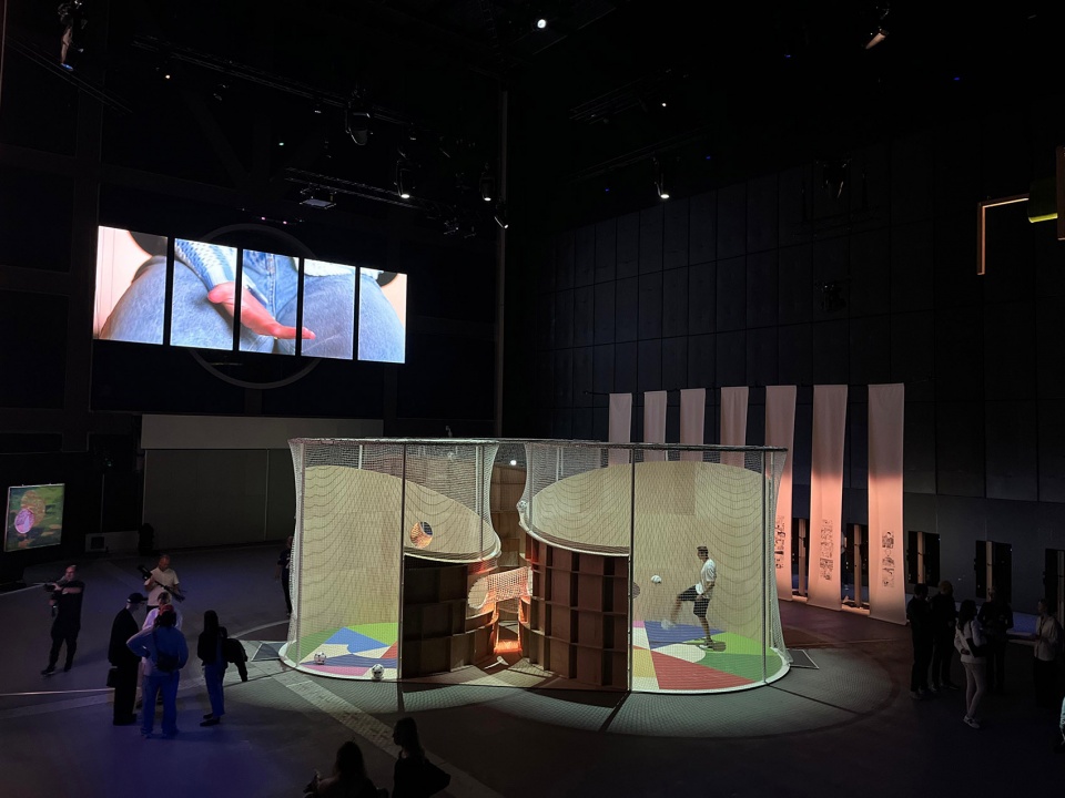 装置邀请观众重现马佐拉的经典进球瞬间,或自由发明新的“进球”,营造一场互动体验,激发动作与参与,宛如一场结合精准与策略的足球游戏。
