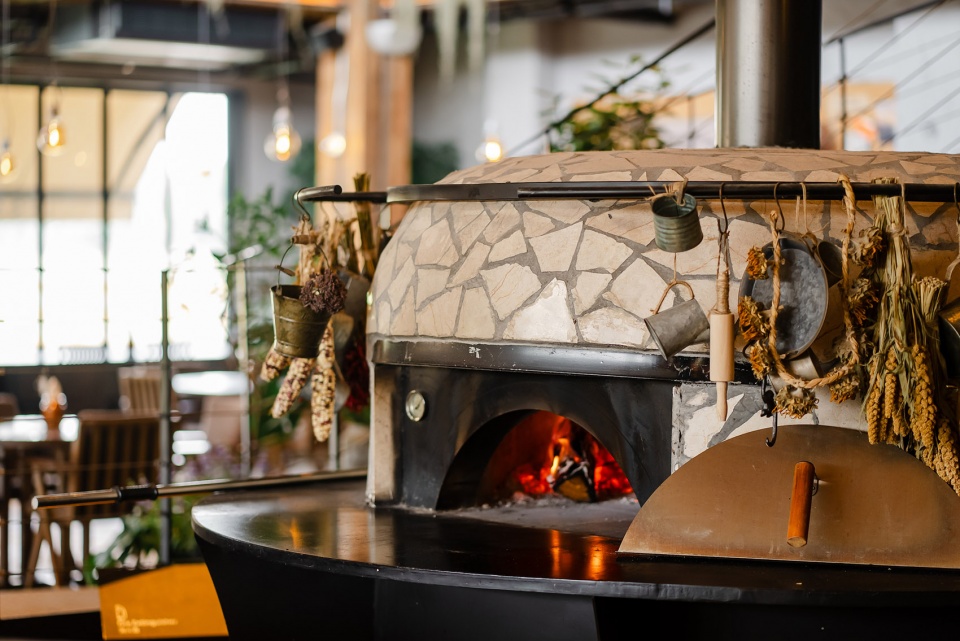 The central pizza hearth becomes a primal gastronomic compass, fusing architectural choreography, multi-sensory archaeology, and thermal theater through a tectonic dialogue between fire, earth, and human circulation.