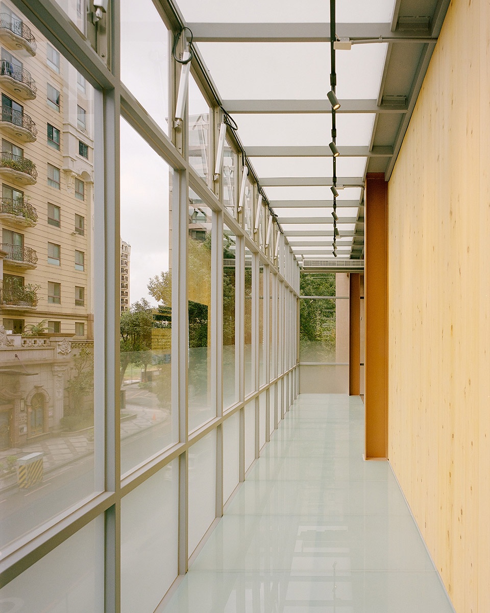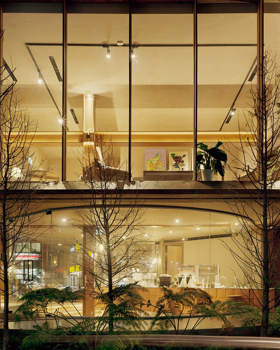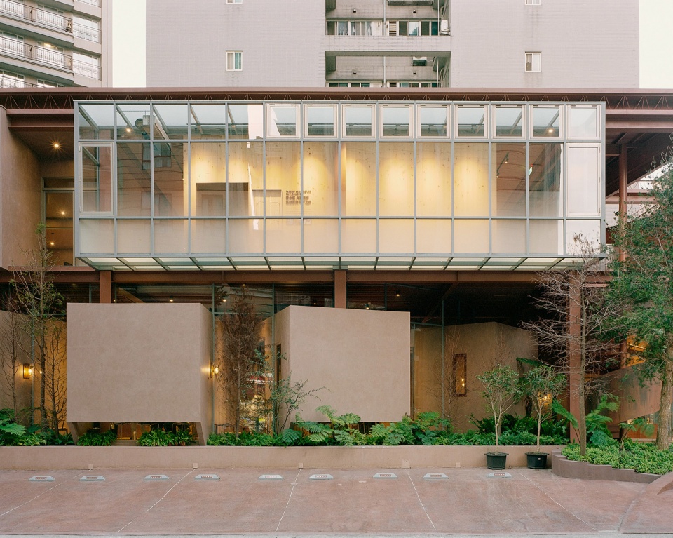 Close to the street frontiers, a café, a bookstore, and sitting areas are designated, deliberately setting back the corporate functions as the secondary space. The project redefines the street corner typology amongst the sea of high-rise buildings for the new town, and engages the corporate headquarters with the public.