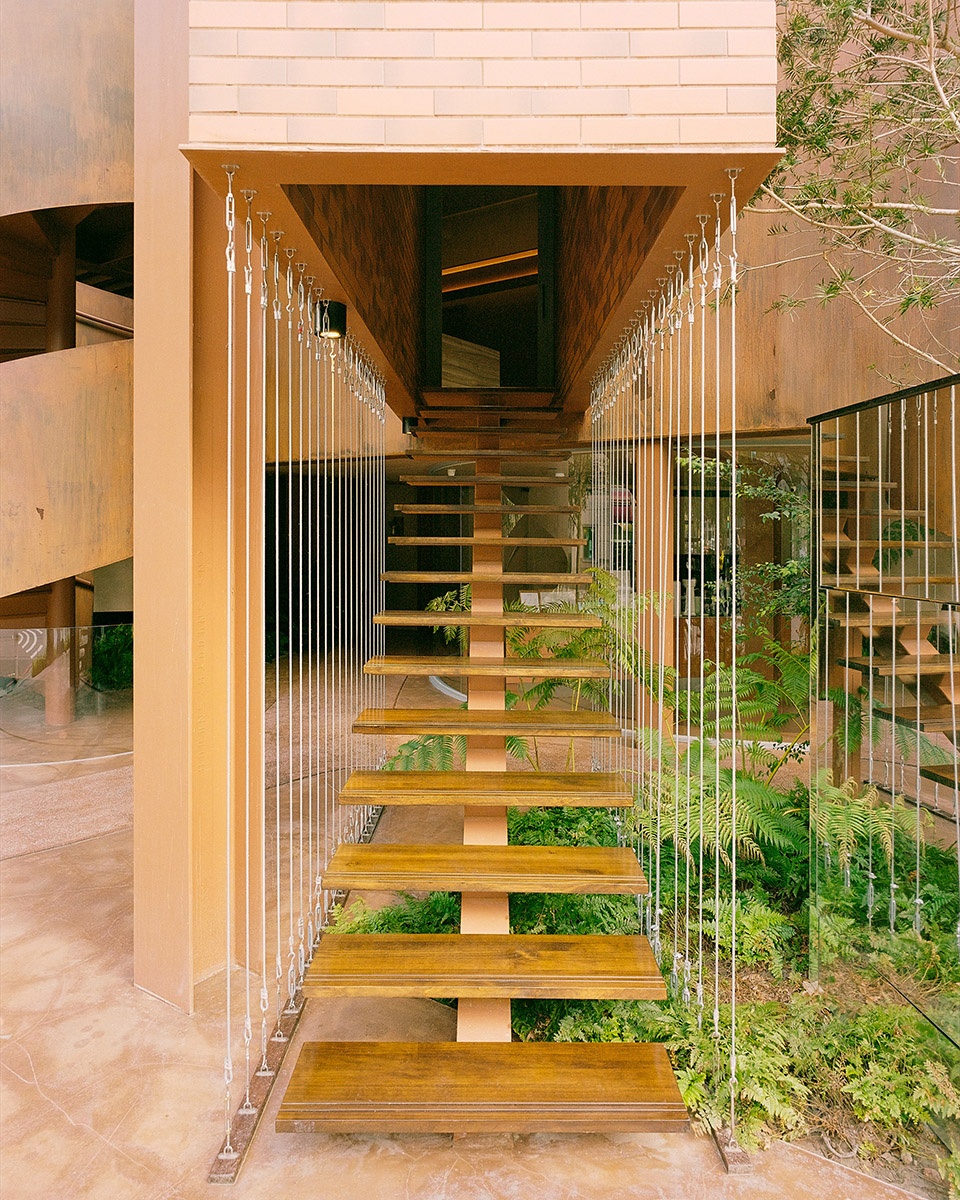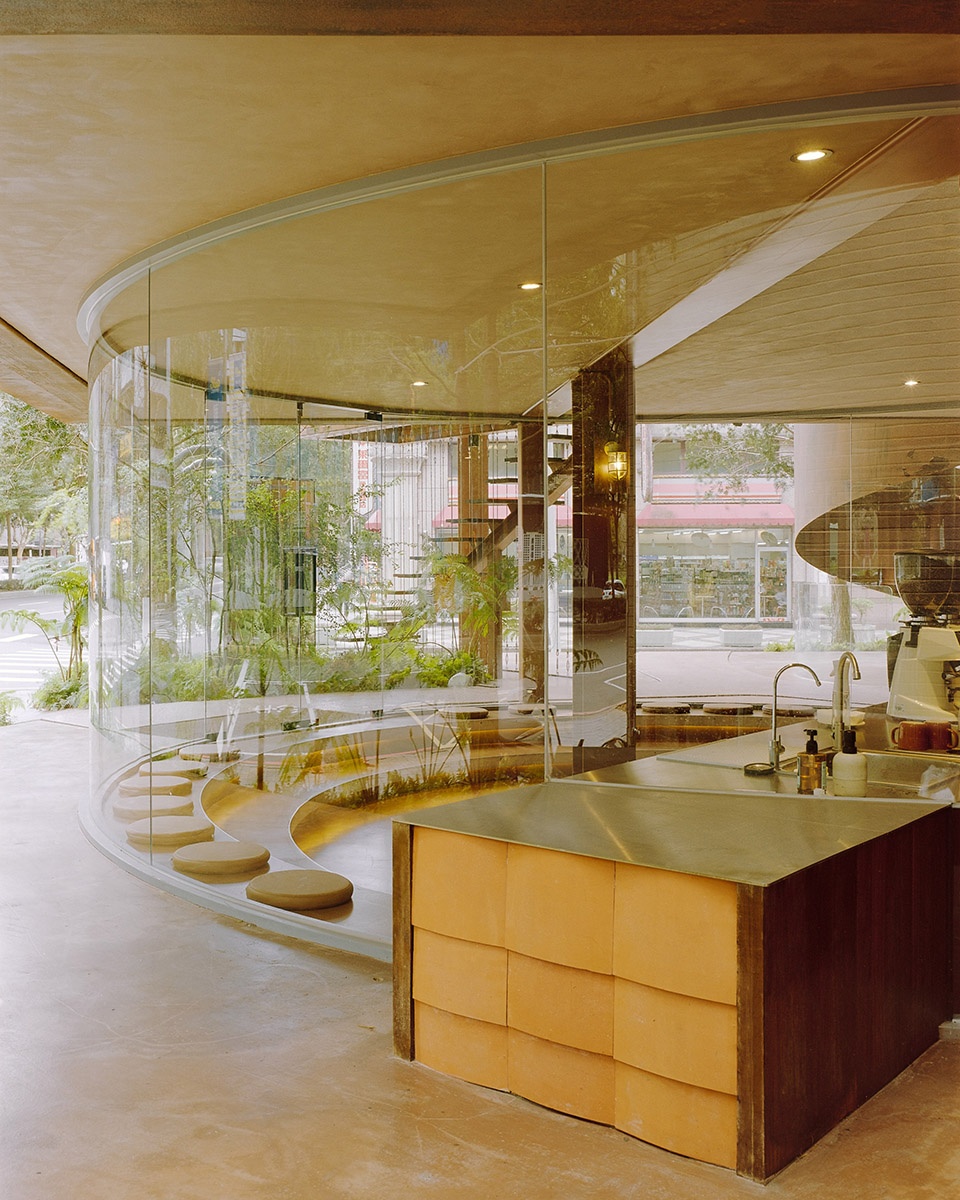 Echoing the organic nature of Taiwanese mountains, interwoven geometries carve fluid and free circulation along the architectural borders, inviting wandering, pause, and exploration. Along with the landscape and planting arrangement, it conjures the sense of gradual encroachment of natural wilderness.