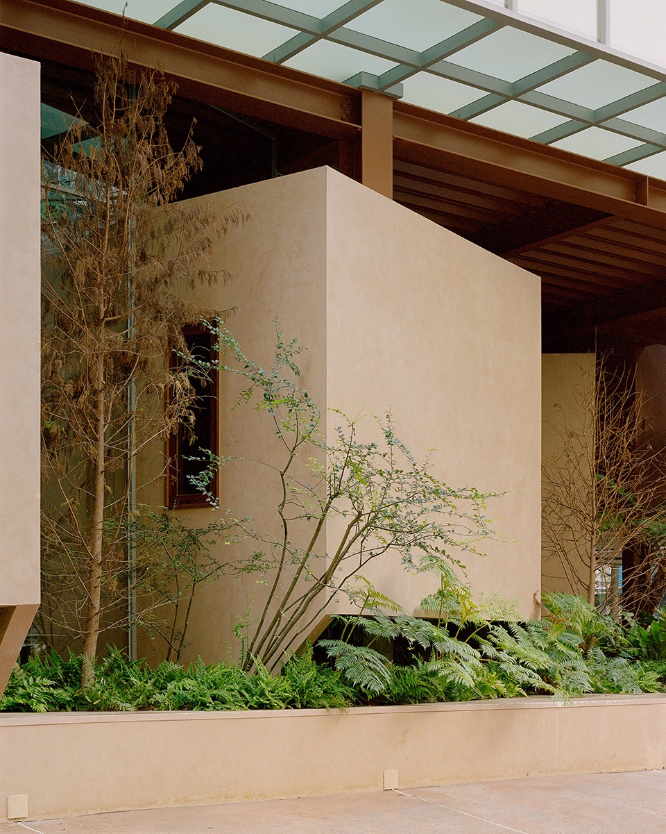 基地周边大量种植台湾原生植物,如台湾杉与蕨类,形成一种可渗透的视觉屏障,也将访客引入如山林步道般蜿蜒的感官旅程。
