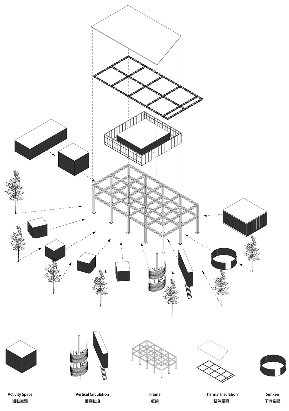 Forests, cityscape, and factory structure are familiar organic ecologies in Taiwan. These three “distinctively Taiwan” and organic entities are carefully combined into an architecture rich in local culture. Beyond mere forms, they are transcended to reflect the society’s inner state, resulting in an intertwined representation of nature, architecture, and urban culture.