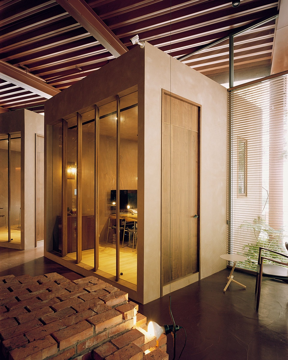 The building composition responds to the logic of “form follows function,” like when at a factory, a control room is added ad hoc when needs emerge.