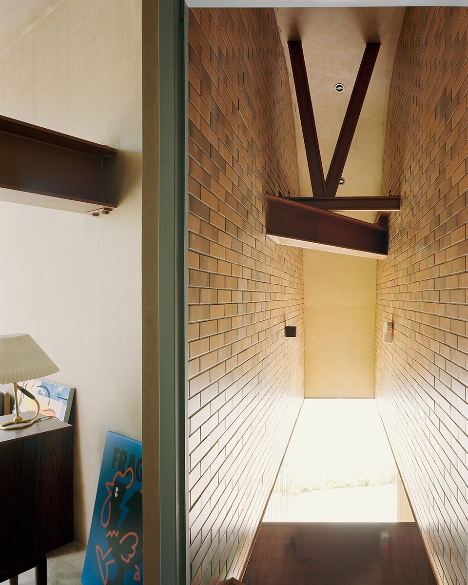 The group of volumes adopts various geometries, representing organic forms through observation of a factory. These units are inserted into the steel structure grid, angled according to the contour of the site. The fan-shaped placement blurs the hierarchy of the elevations and circulation. The body of continuous corner spaces animates the light and shadow throughout the day. The external staircase linking the ground and first floor, deliberately disjointed, resembles the fragmentation of factory spaces. Materials commonly found in factories are employed authentically, with minimal embellishment, embracing the rawness of industrial environments.