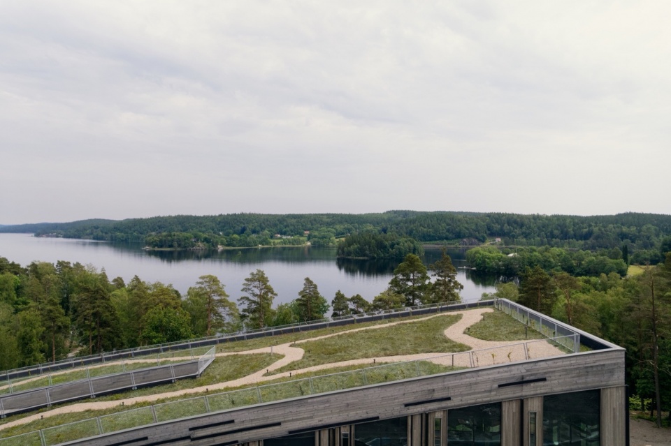 建筑顶部模仿树梢,设有开放的屋顶花园、露台和走道。屋顶覆盖着由苔藓、草丛、蓝莓、草、野花及其他本土植物组成的森林地面垫。这种设计减缓了水流径流,降低了过热风险,支持生物多样性,同时也成为一种自身吸引力。
